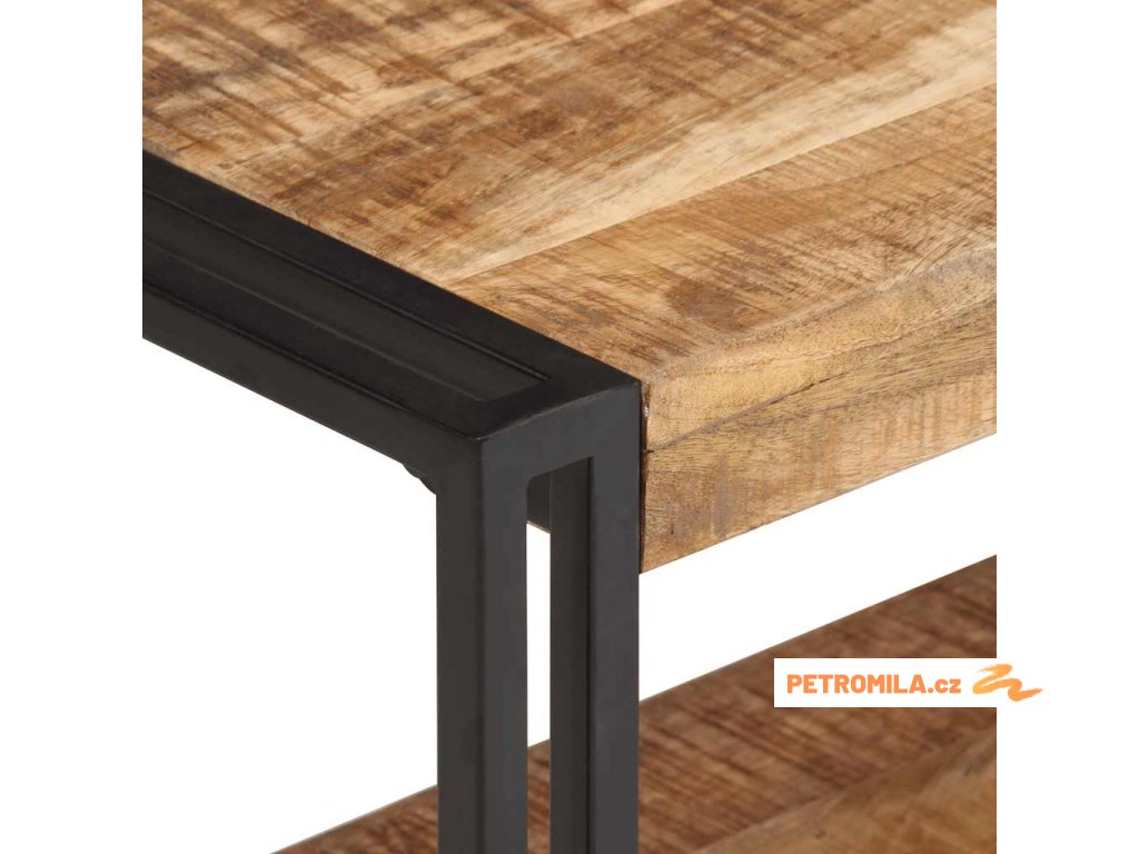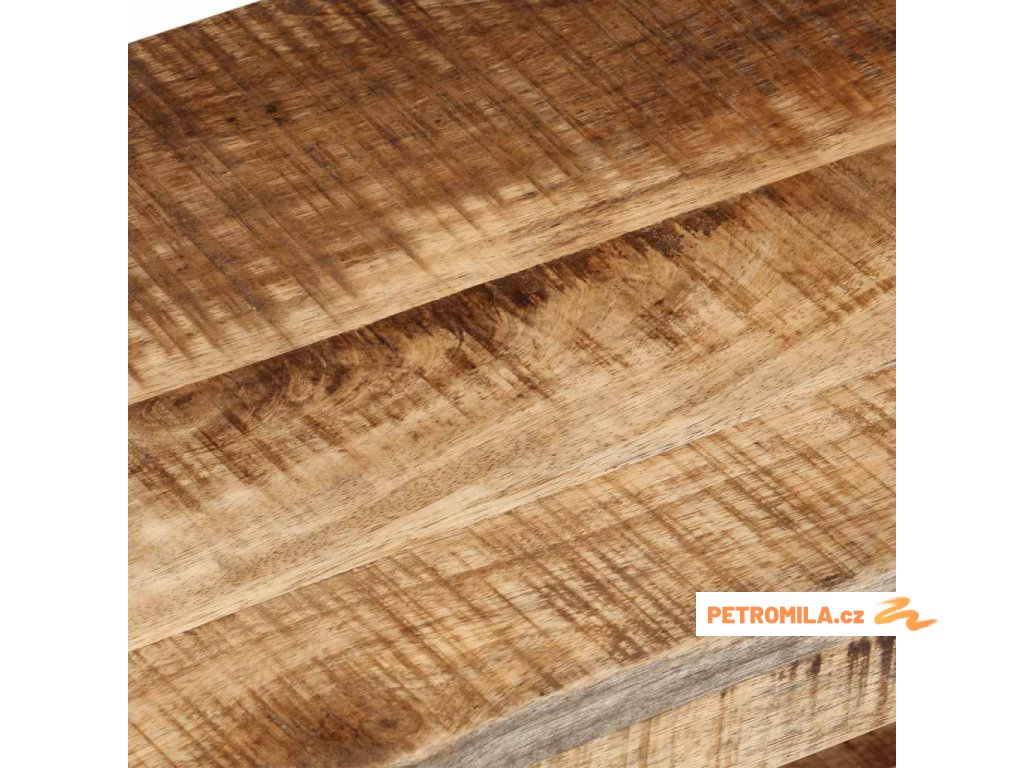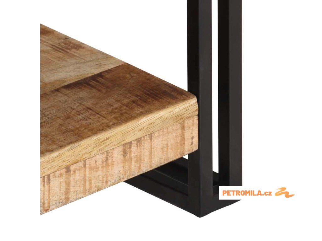 - Materiál: hrubé mangovníkové dřevo s přírodním povrchem, černě práškově lakované železo