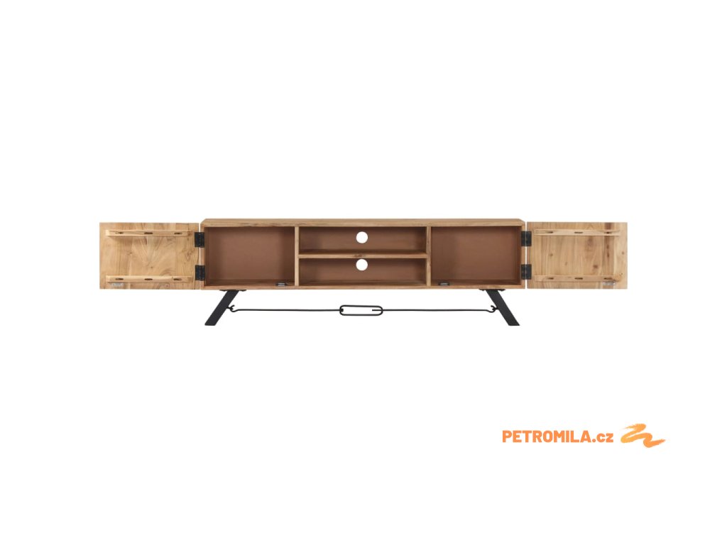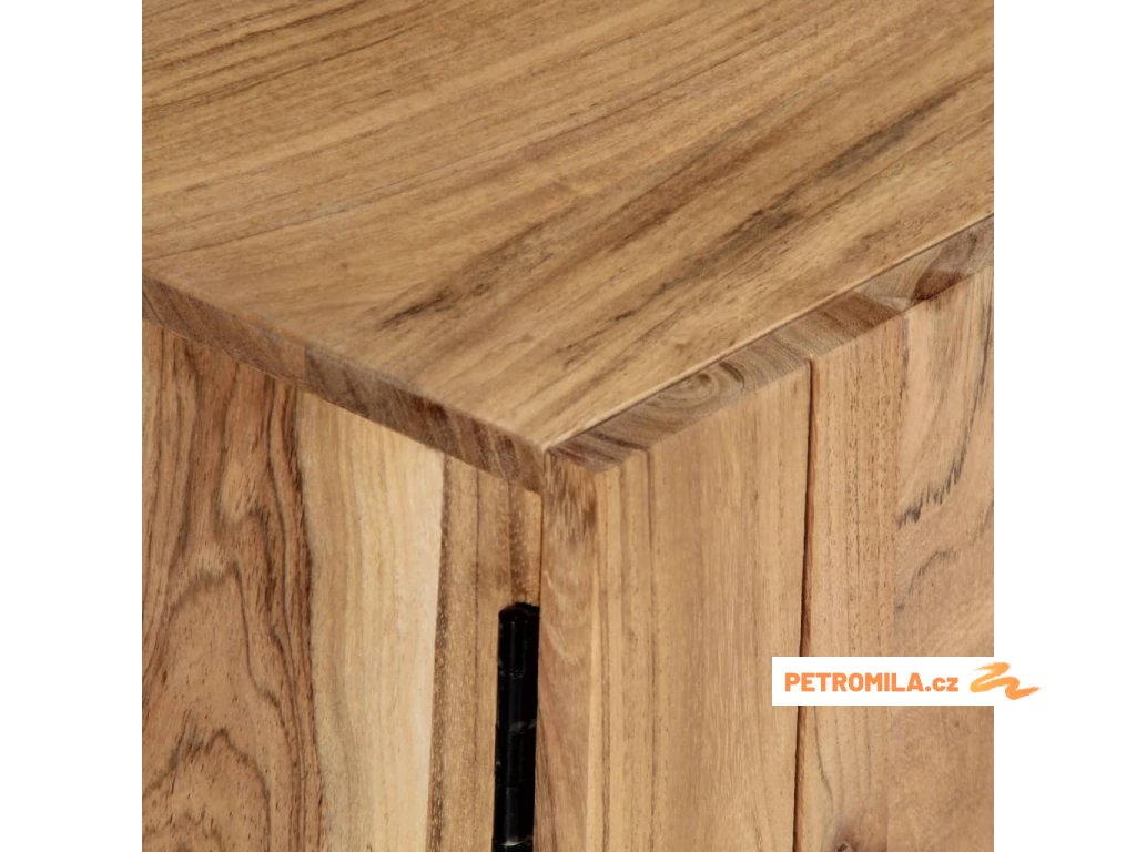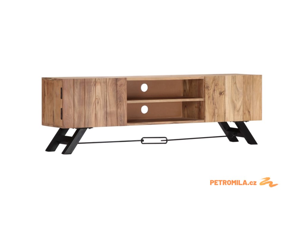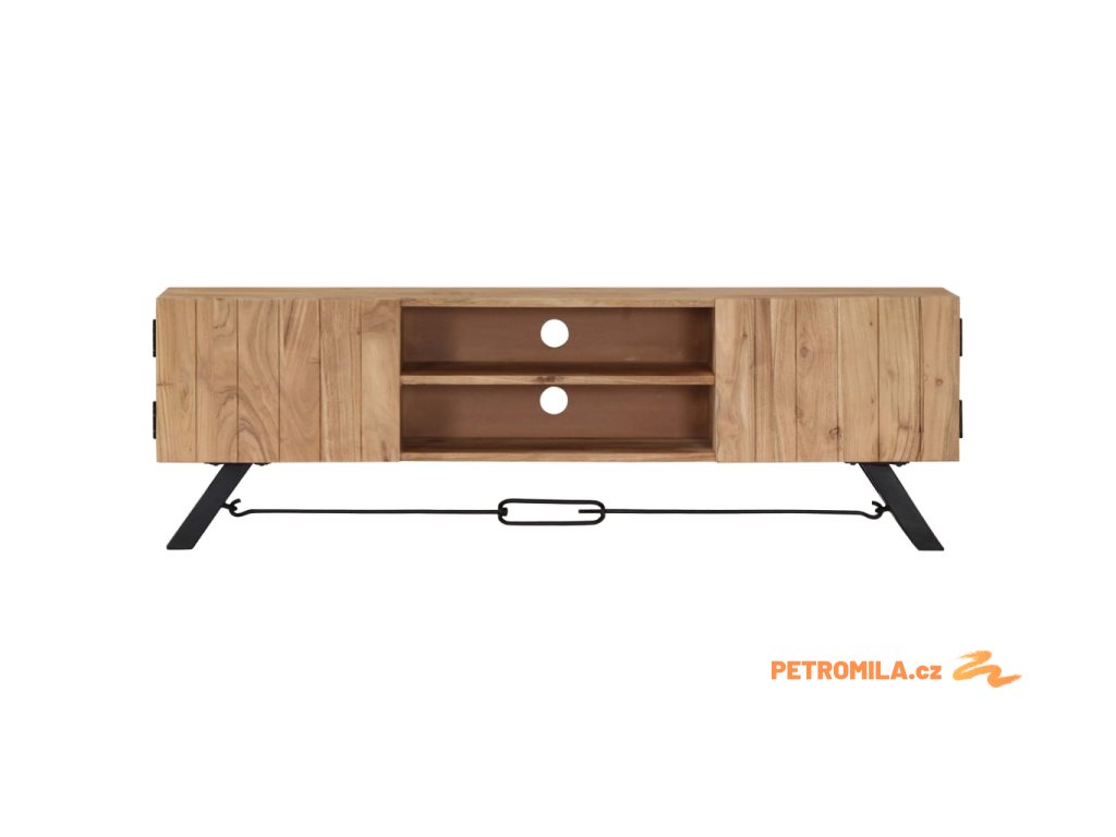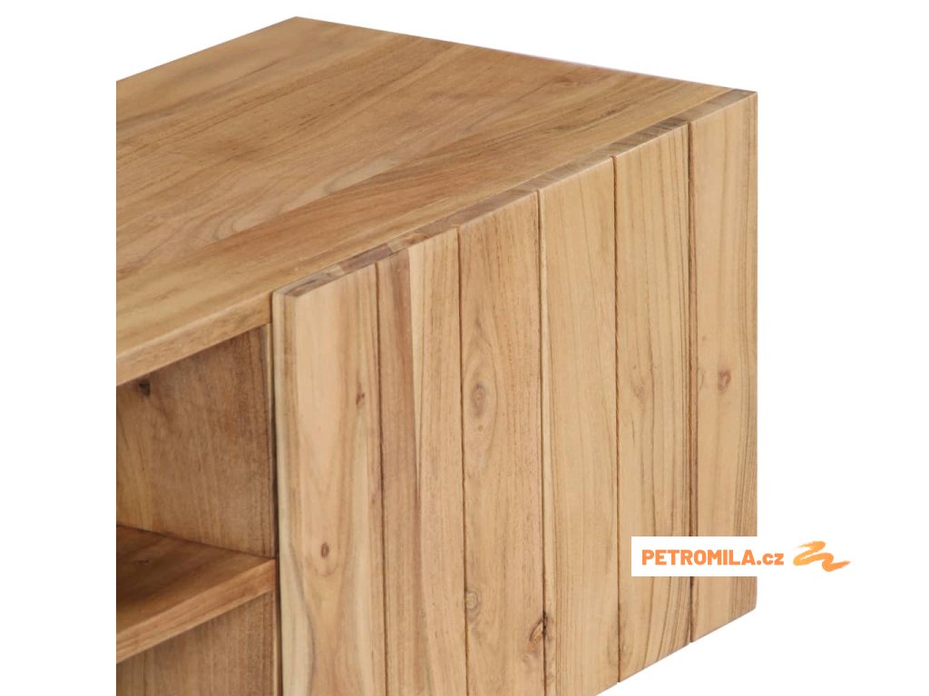 Odkládací skříňka je vyrobena z masivního akáciového dřeva s povrchovou úpravou, které vděčí za svůj překrásný vzhled. Kromě půvabného designu se může pochlubit také výjimečnou stabilitou, odolností a estetičností. Skříňka je navíc celá ručně vyrobená a elegantní kresba dřeva činí každý kus nábytku zcela jedinečným a lehce odlišným od ostatních. Stolek pod televizi disponuje 2 přihrádkami a 2 zavíracími skříňkami, které vám poskytnou spoustu místa, kde si můžete uspořádat svá multimediální zařízení, knížky, boty a nejrůznější další věci.