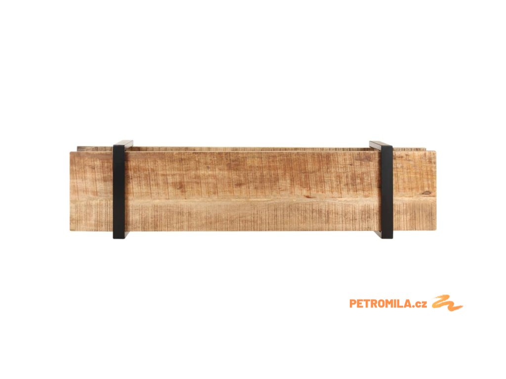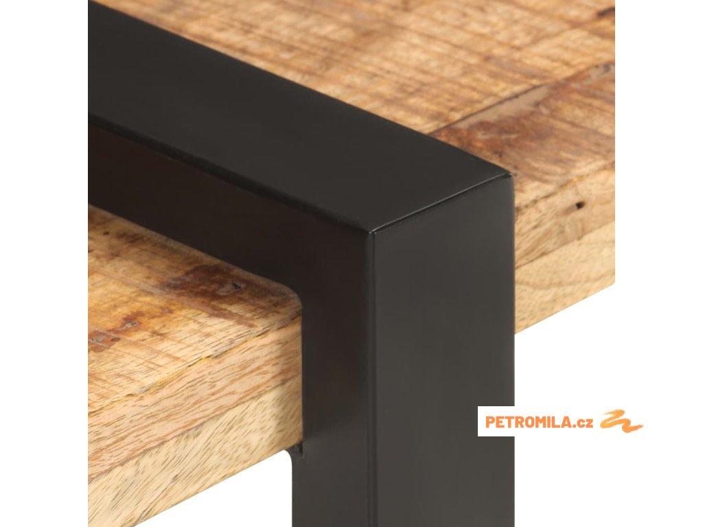 - Materiál: masivní hrubé mangovníkové dřevo s přírodním povrchem, práškově lakované železo