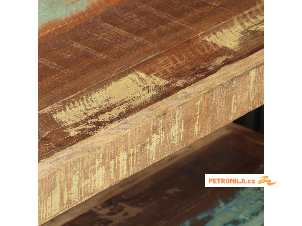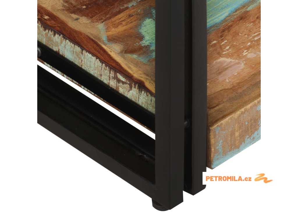 - Materiál: masivní recyklované dřevo s vícebarevnou povrchovou úpravou, práškově lakované železo