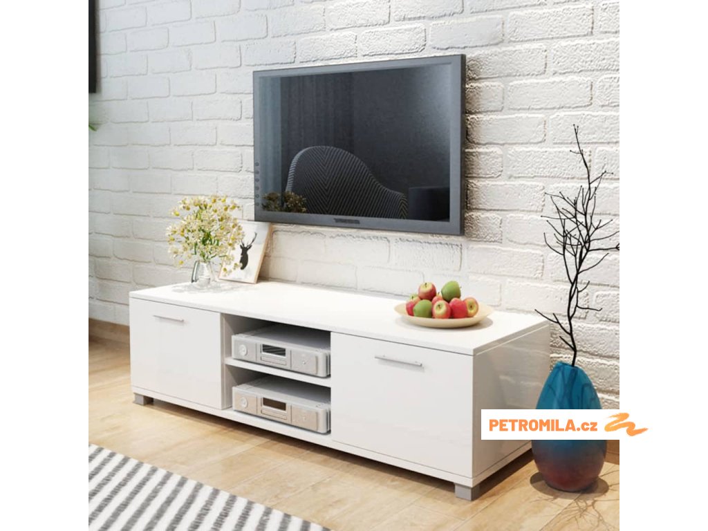 TV stolek bílý s vysokým leskem 120 x 40,5 x 35 cm