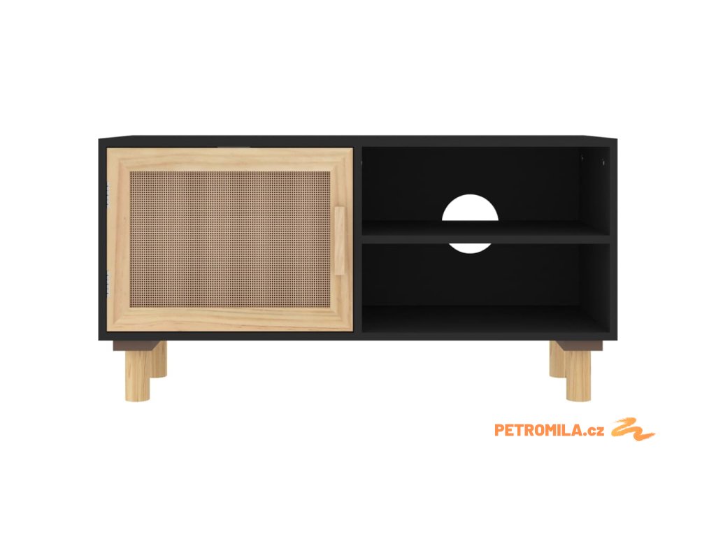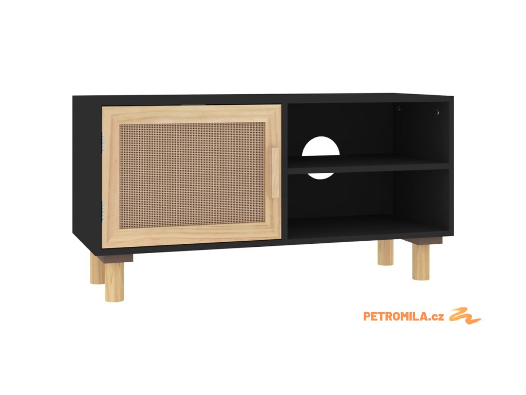 TV stolek černá 80x30x40 cm masivní borovice a přírodní ratan
