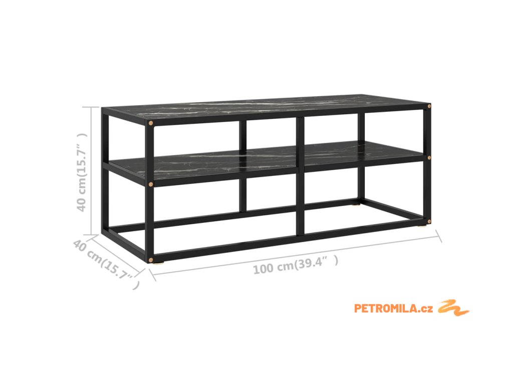 TV stolek černý s černým mramorovým sklem 100 x 40 x 40 cm