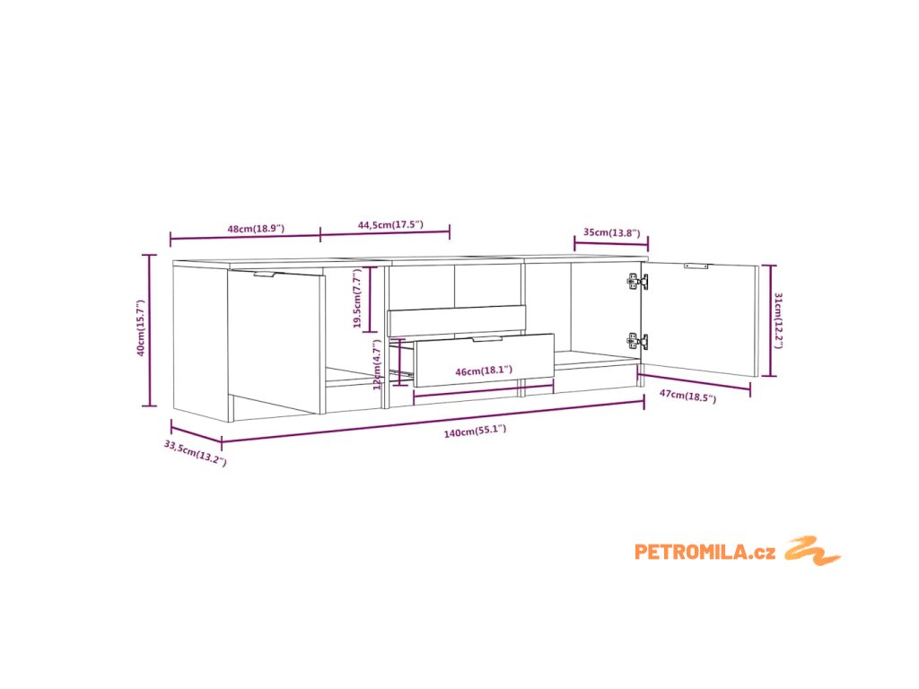 TV stolek dub sonoma 140 x 35 x 40 cm, konstrukční dřevo