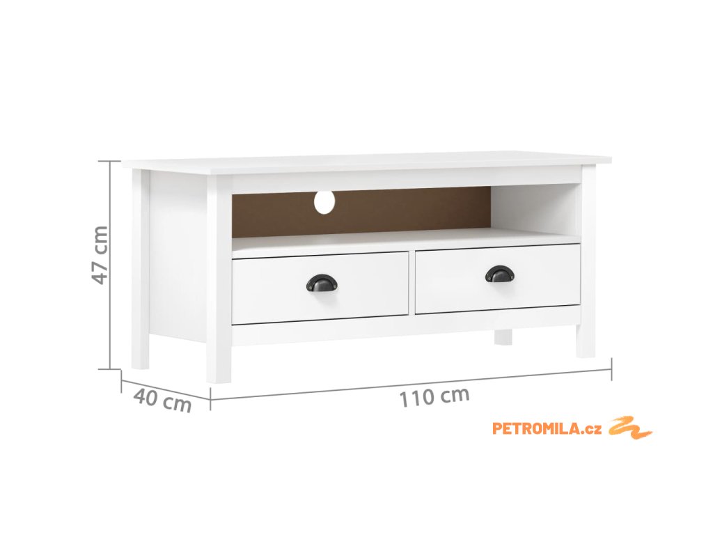 TV stolek Hill bílý 110 x 40 x 47 cm masivní borové dřevo