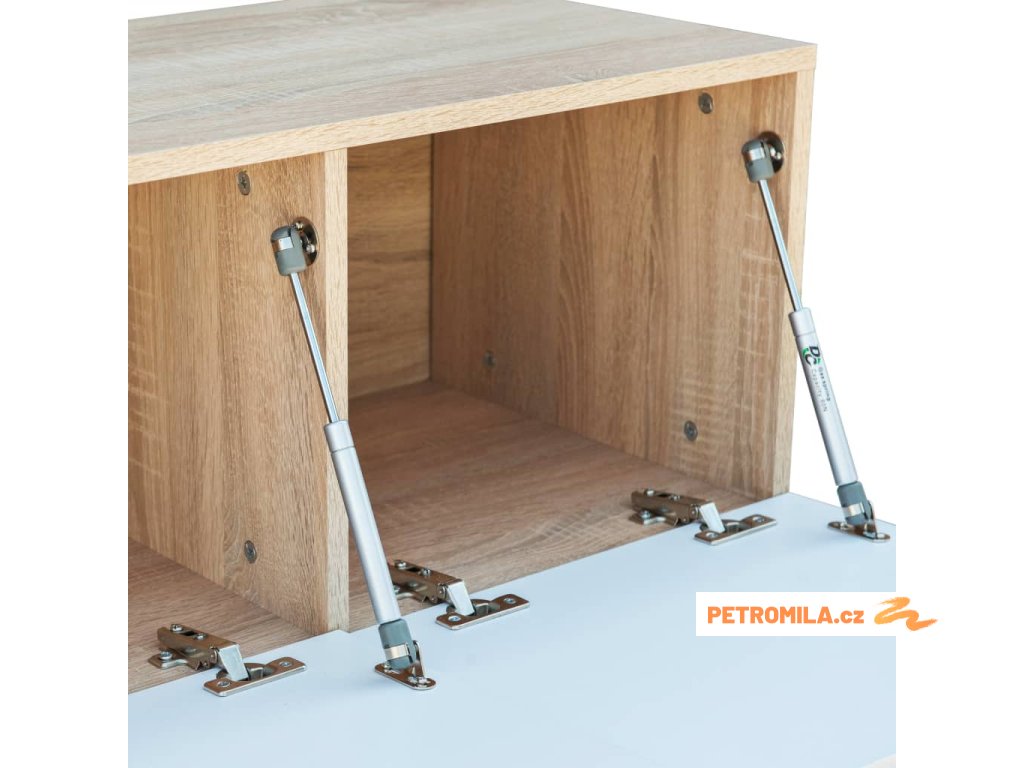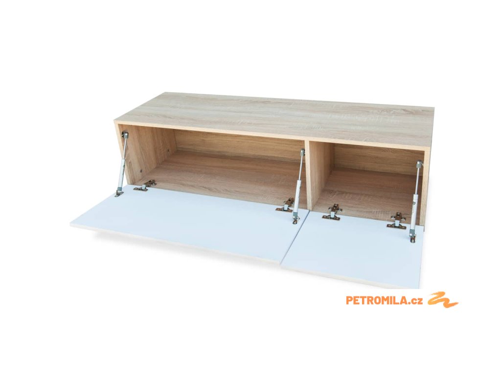 Stolek na multimediální zařízení je vyroben z kompozitního dřeva, který doplňují lišty z PVC. Dvířka s vertikálním otevíráním se snadno otvírají a podtrhují elegantní moderní vzhled nábytku. Stolek je vybavený dvěma skříňkami, které pojmou nejen váš DVD přehrávač, ale také herní konzoli, satelitní přijímač a všechna vaše CD či DVD. Díky svým čistým liniím navíc i dobře vypadá. Můžete ho bez obav postavit do obývacího pokoje nebo do ložnice.