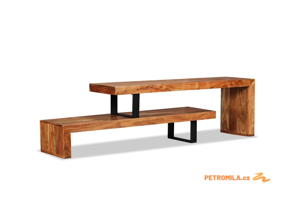 Náš TV stolek byl ručně vyrobený z masivního akáciového dřeva, které mu společně s řemeslným zpracováním propůjčuje krásný retro vzhled. Každý krok výroby je prováděný s největší péčí, ať už jde o leštění nebo lakování. Krásná struktura dřeva dává každému kusu nábytku jeho unikátní a mírně odlišný charakter. Stolek má dvě úrovně, kde najdete dostatek místa pro uložení multimediálních zařízení, datových nosičů a dalších předmětů, které chcete vystavit a zároveň je mít po ruce. Horní část TV stolku můžete sejmout nebo umístit tak, aby byl stolek delší či naopak kratší.