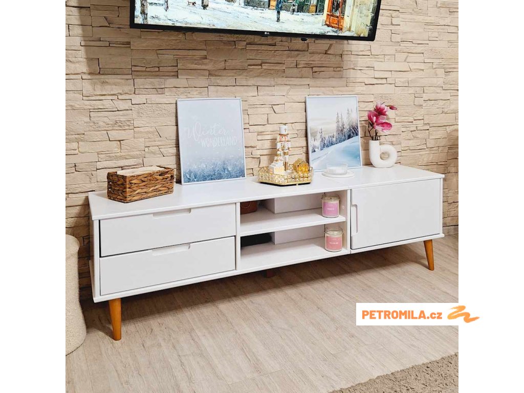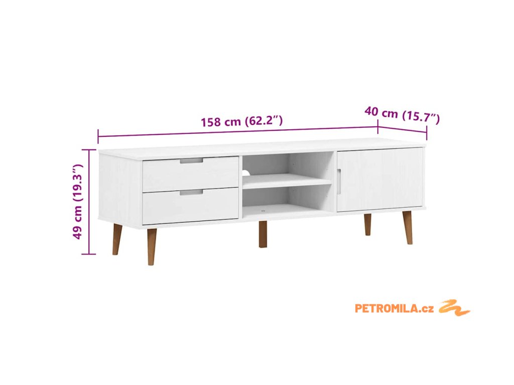 TV stolek MOLDE bílý 158 x 40 x 49 cm masivní borové dřevo