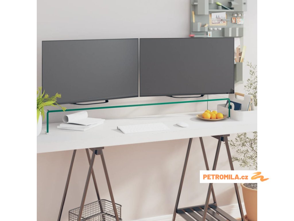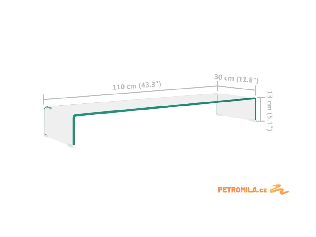 TV stolek / podstavec na monitor čiré sklo 110x30x13 cm
