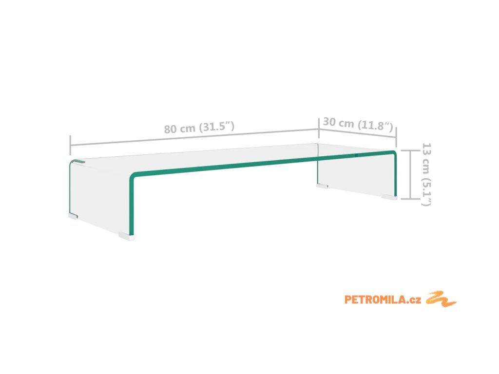 TV stolek / podstavec na monitor čiré sklo 80x30x13 cm