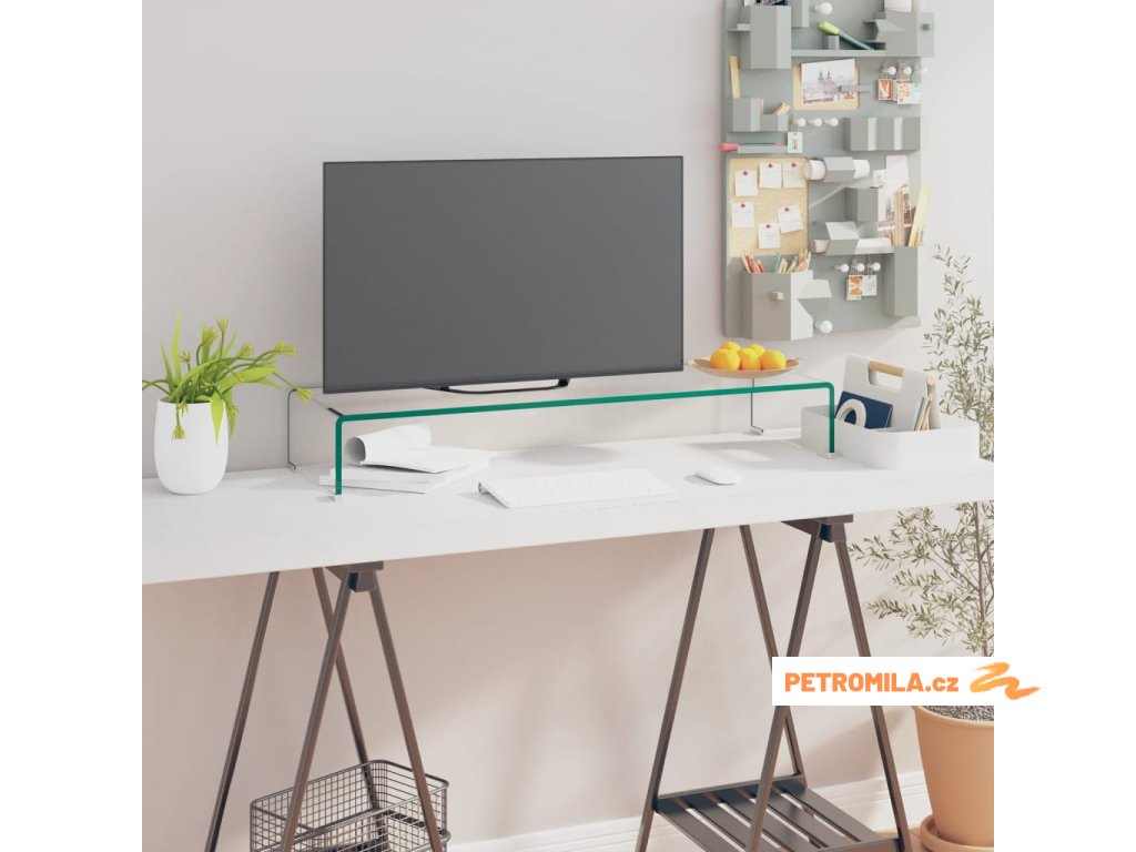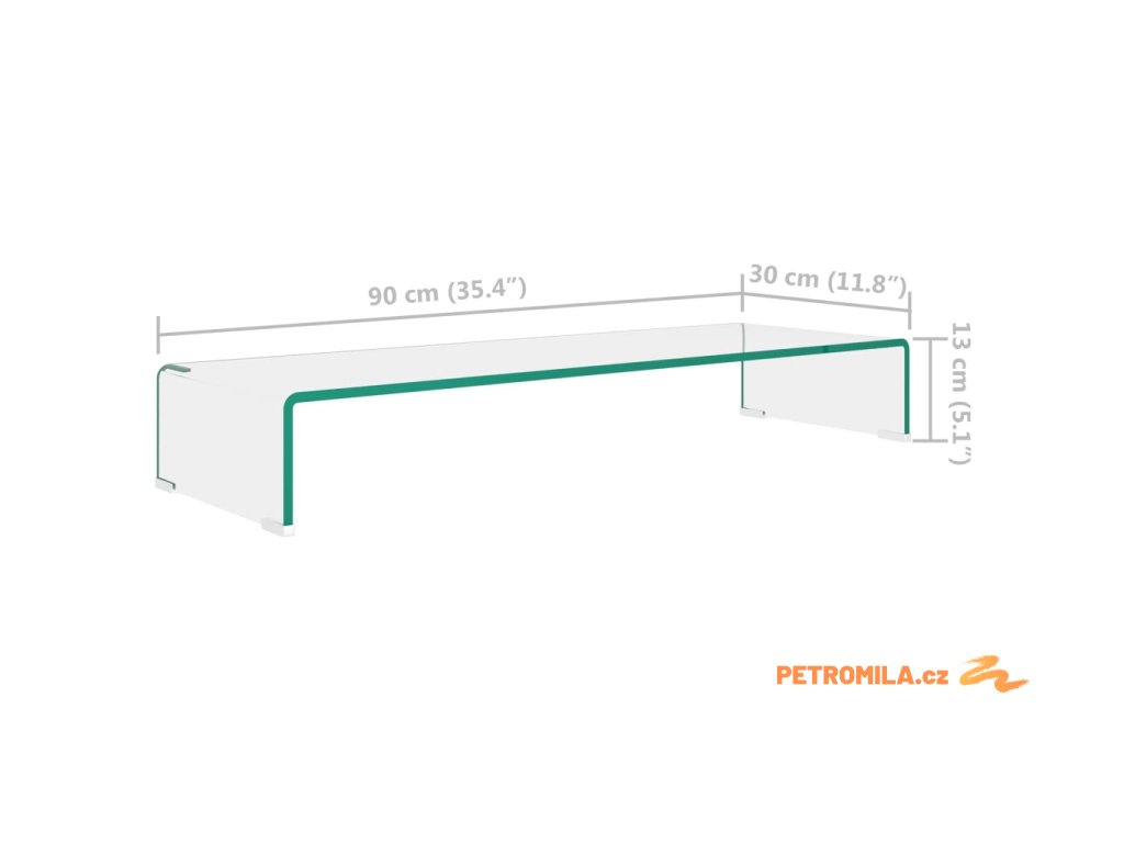 TV stolek / podstavec na monitor čiré sklo 90x30x13 cm