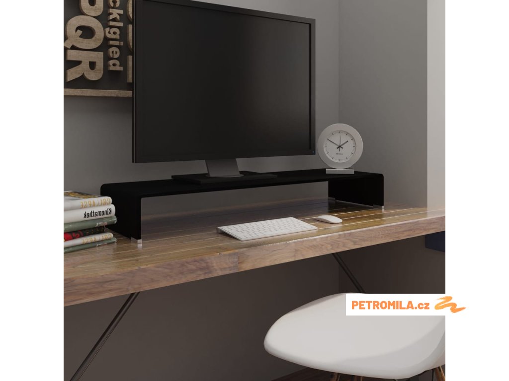 Tuto skleněnou polici můžete použít také jako TV stolek nebo stojan pod monitor vašeho stolního počítače, televizi, notebook nebo jiná multimediální zařízení. Když svůj monitor umístíte na tuto skleněnou polici, budete mít lepší výhled na obrazovku a zároveň se vám bude sedět pohodlněji, což vám pomůže snížit napětí ve vaší šíji a zádech. Úložný prostor pod ní můžete využít pro umístění svého DVD přehrávače, herní konzole, streamovacího zařízení, přijímačů a paměťových nosičů.