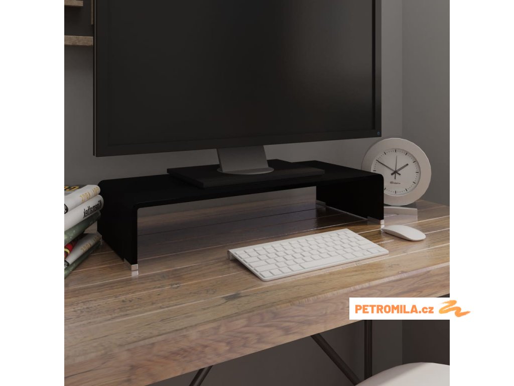 Tuto skleněnou polici můžete použít také jako TV stolek nebo stojan pod monitor vašeho stolního počítače, televizi, notebook nebo jiná multimediální zařízení. Když svůj monitor umístíte na tuto skleněnou polici, budete mít lepší výhled na obrazovku a zároveň se vám bude sedět pohodlněji, což vám pomůže snížit napětí ve vaší šíji a zádech. Úložný prostor pod ní můžete využít pro umístění svého DVD přehrávače, herní konzole, streamovacího zařízení, přijímačů a paměťových nosičů.