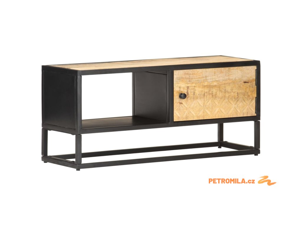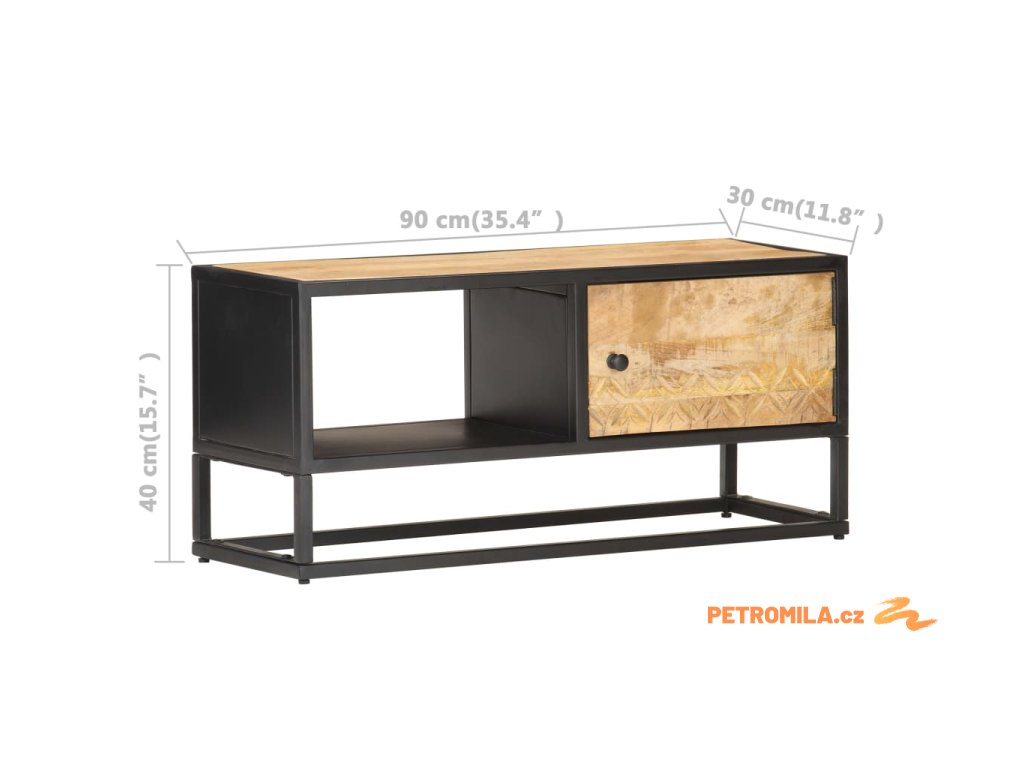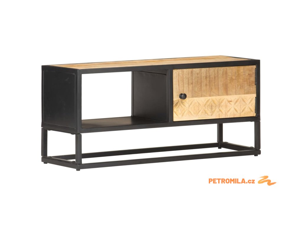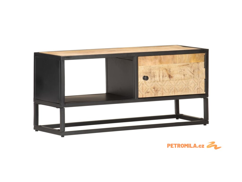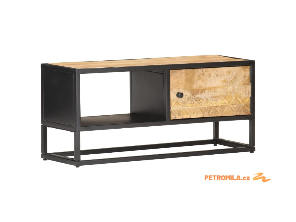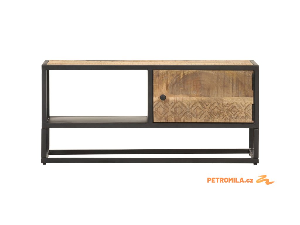 TV stolek s vyřezávanými dvířky 90 x 30 x 40 cm hrubý mangovník