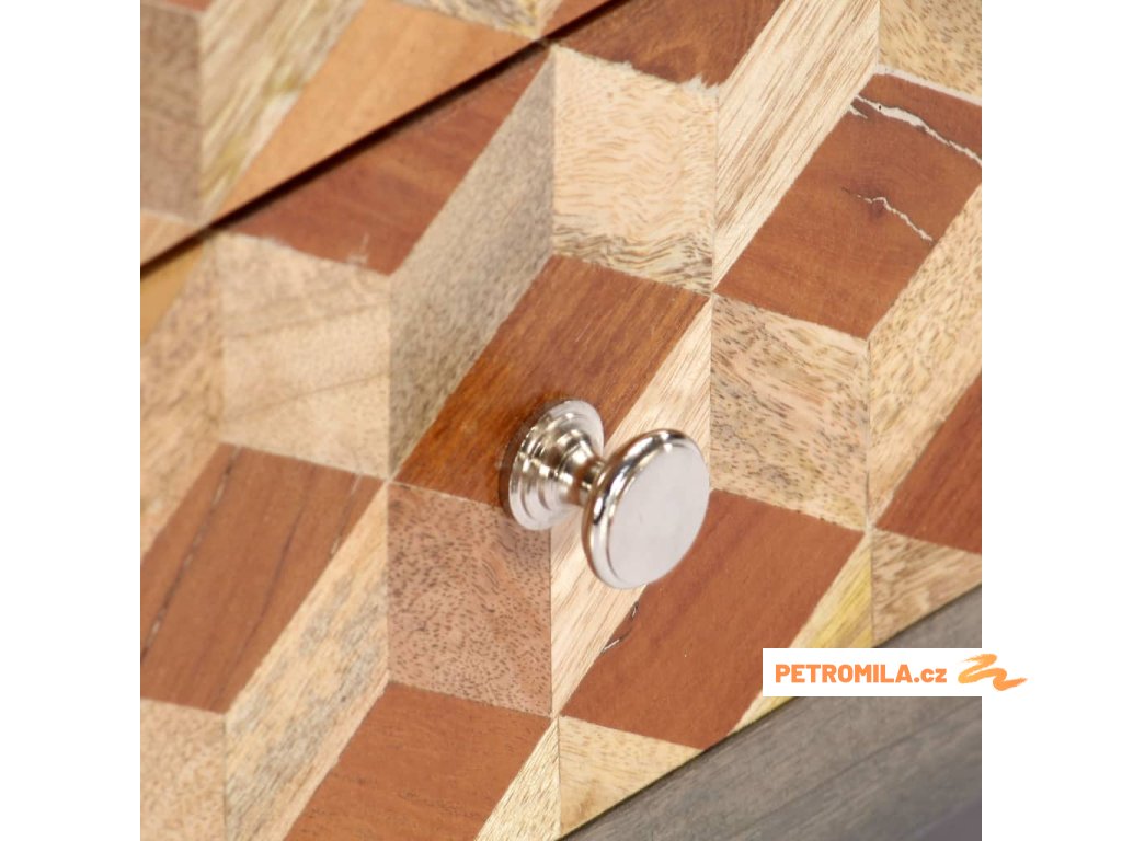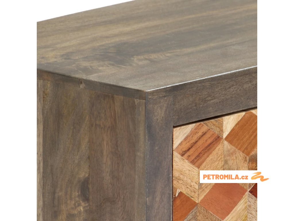 Má 1 dvířka, 2 zásuvky a 2 přihrádky, ve kterých najdete spoustu úložného prostoru. Jedná se tedy nejen o dekorativní, ale i praktický doplněk do vašeho obývacího pokoje či ložnice. Skříňka je vyrobena z masivního mangovníkového dřeva a byla naleštěna, natřena a nalakována, čemuž vděčí za svůj půvabný a rafinovaný vzhled. Její krásu navíc umocňuje motiv ve tvaru diamantu na dveřích a zásuvkách. Sestavení stolku pod televizi je jednoduché a k jejímu čištění vám postačí navlhčený hadřík.