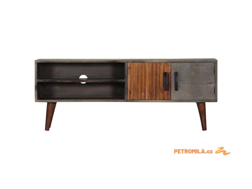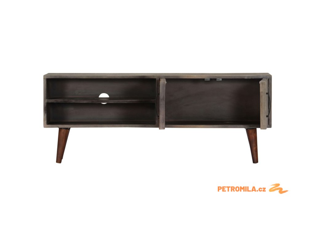 TV stolek šedý 130 x 30 x 46 cm masivní hrubý mangovník