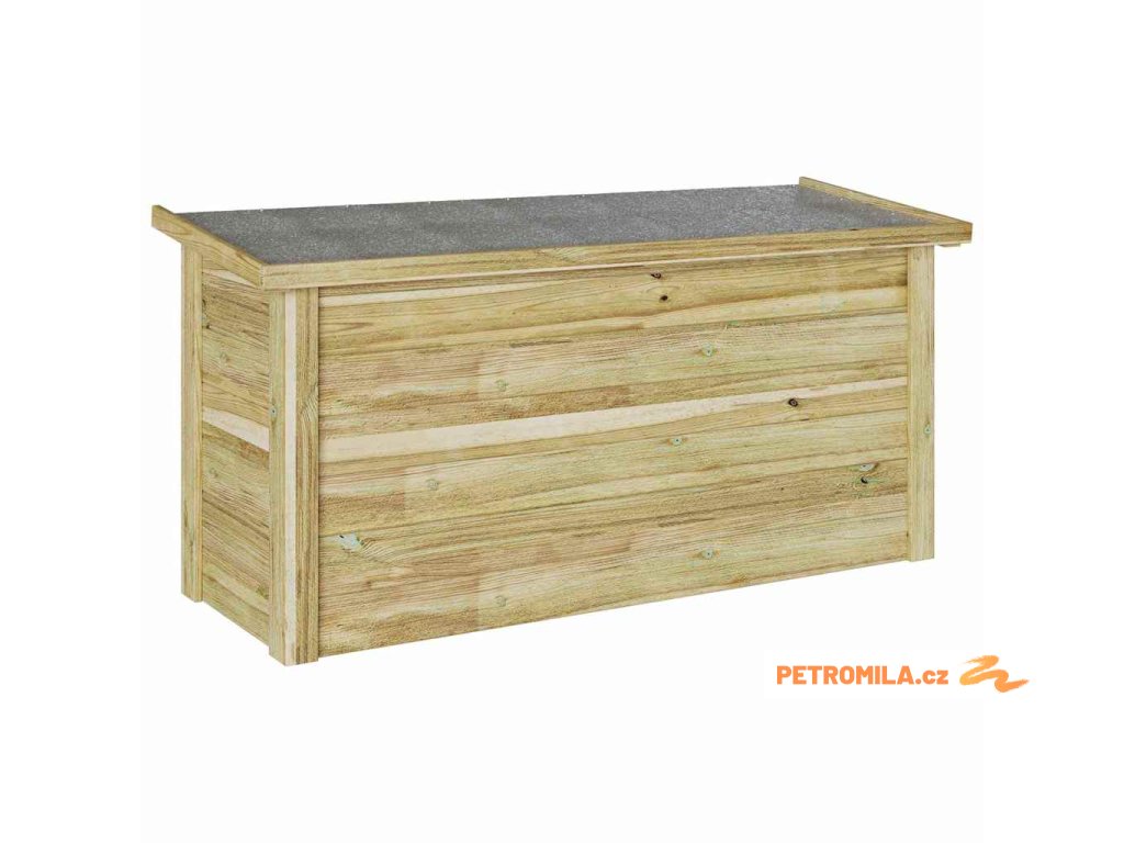 Tahle rustikální dřevěná venkovní úložná krabice je skvělej mix funkčnosti a stylu. Umožní ti chytře uspořádat svůj venkovní nábytek. Perfektní na tvůj balkon, dobře vypadá a chrání tvoje zahradní věci, polštáře nebo nezbytnosti před deštěm.