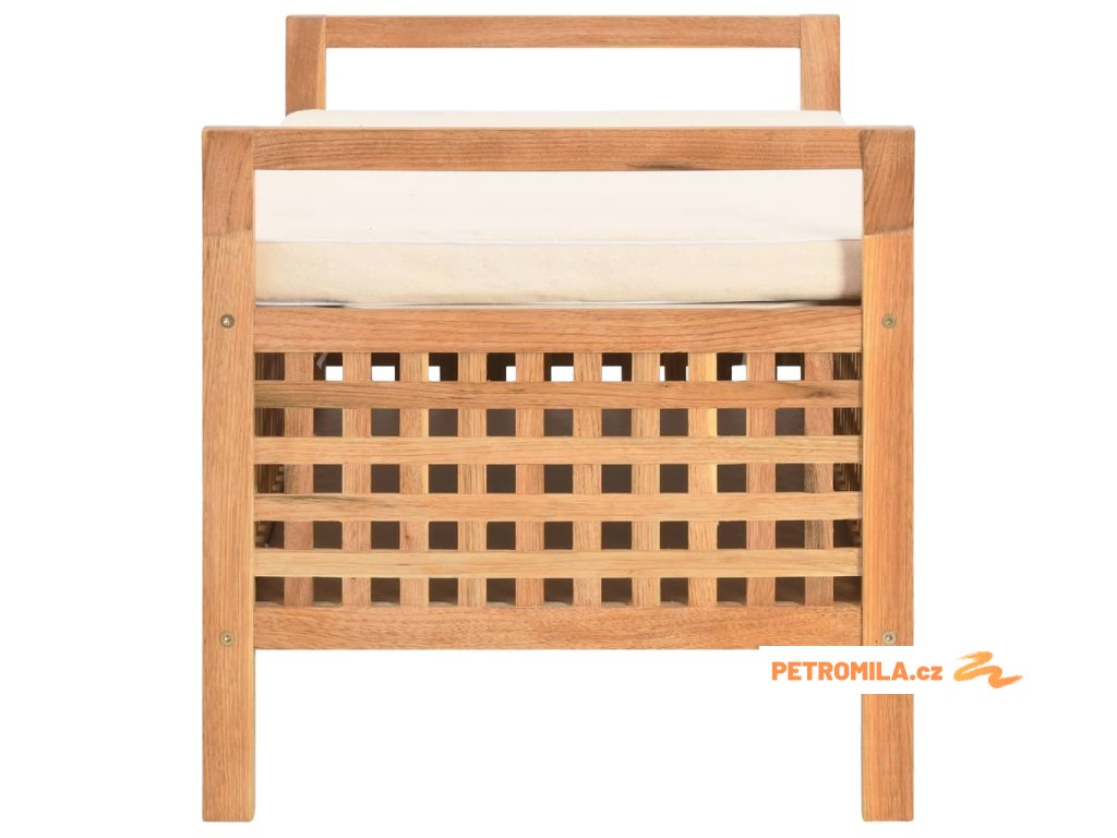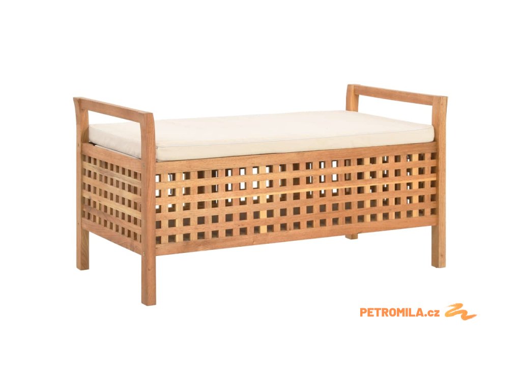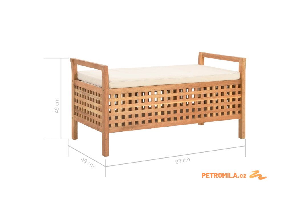 Lavice je vyrobena z masivního ořechového dřeva a překližky, je tudíž pevná a odolná. Skrývá se v ní prostorná úložná přihrádka, která je jako dělaná ke skladování ručníků, oblečení, podušek, hraček, nářadí a dalšího příslušenství. Její mřížkové provedení umožňuje dobré větrání. Silně polstrovaná poduška se vám navíc postará o mimořádně pohodlné sezení. Je opatřena povlakem na zip, který snadno sundáte a vyperete.