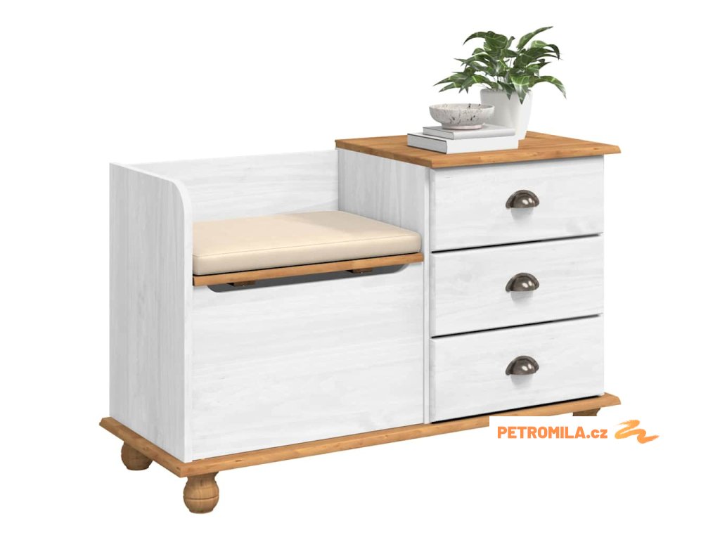 Úložná lavice ASKIM Bílá 100 x 39 x 62 cm Masivní borové dřevo