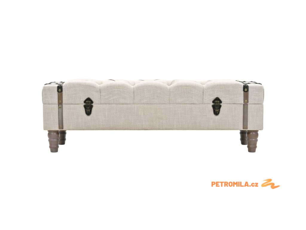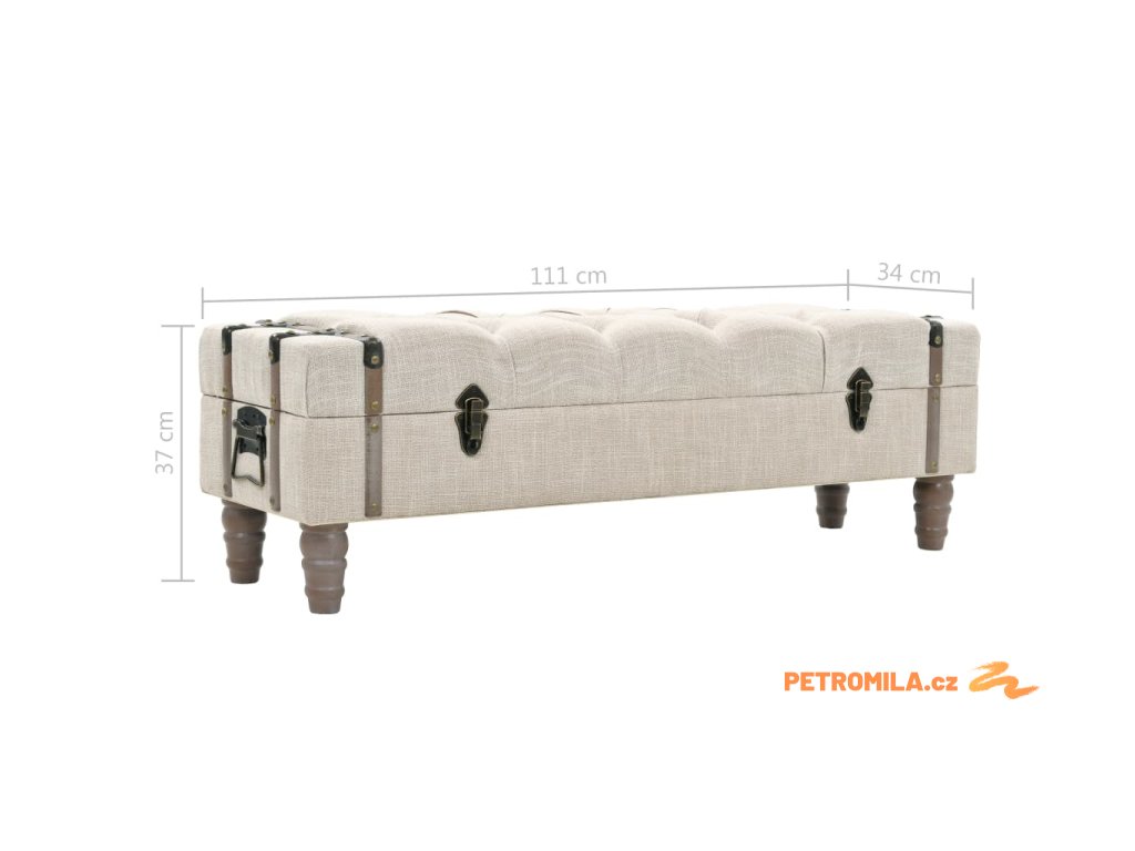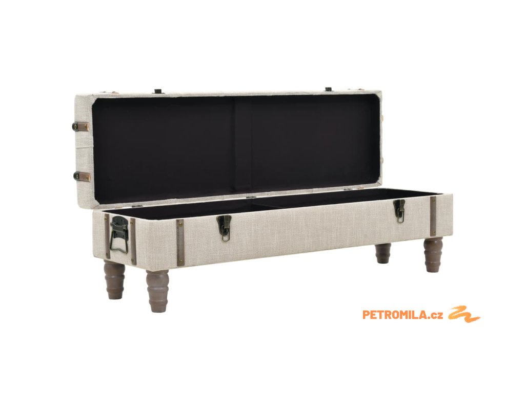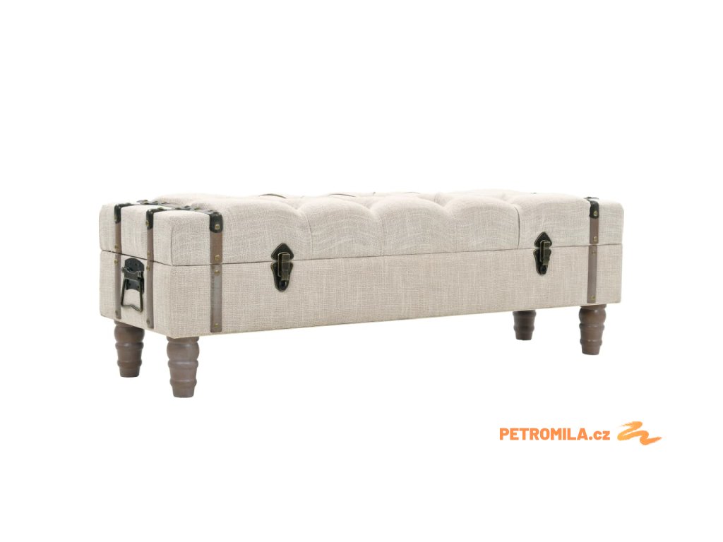 Úložný box je vyroben z masivního jedlového dřeva. Má silné ocelové nohy a polstrovaný sedák s čalouněním z moderní látky. Poskytne vám spoustu prostoru pro ukládání hromady nejrůznějších věcí, které si nepřejete mít na očích, ale chcete je mít po ruce. Díky odolné rukojeti lze tuto lavici se vzhledem kufru snadno přesouvat z pokoje do pokoje.