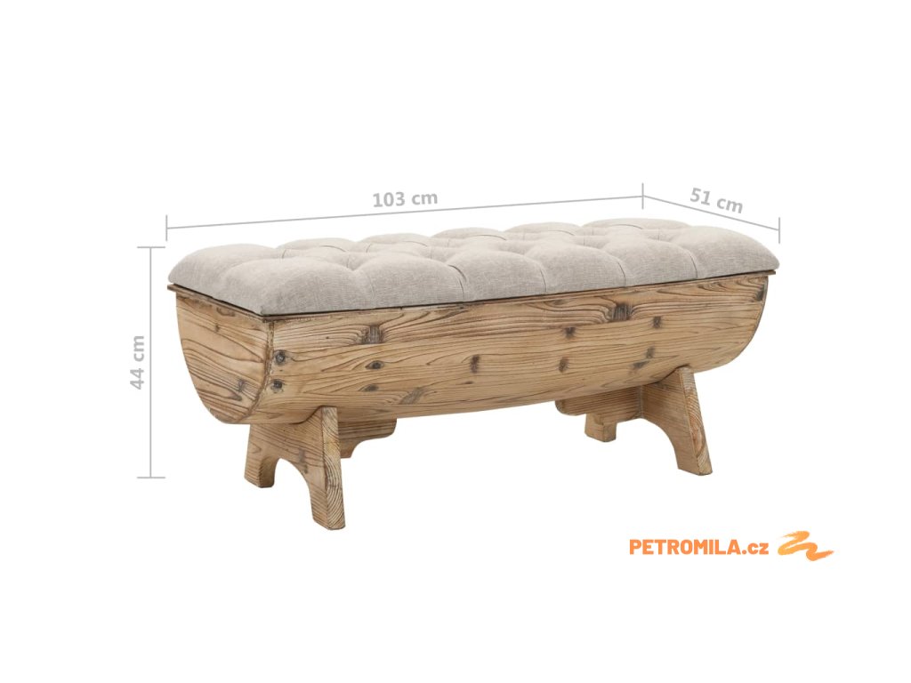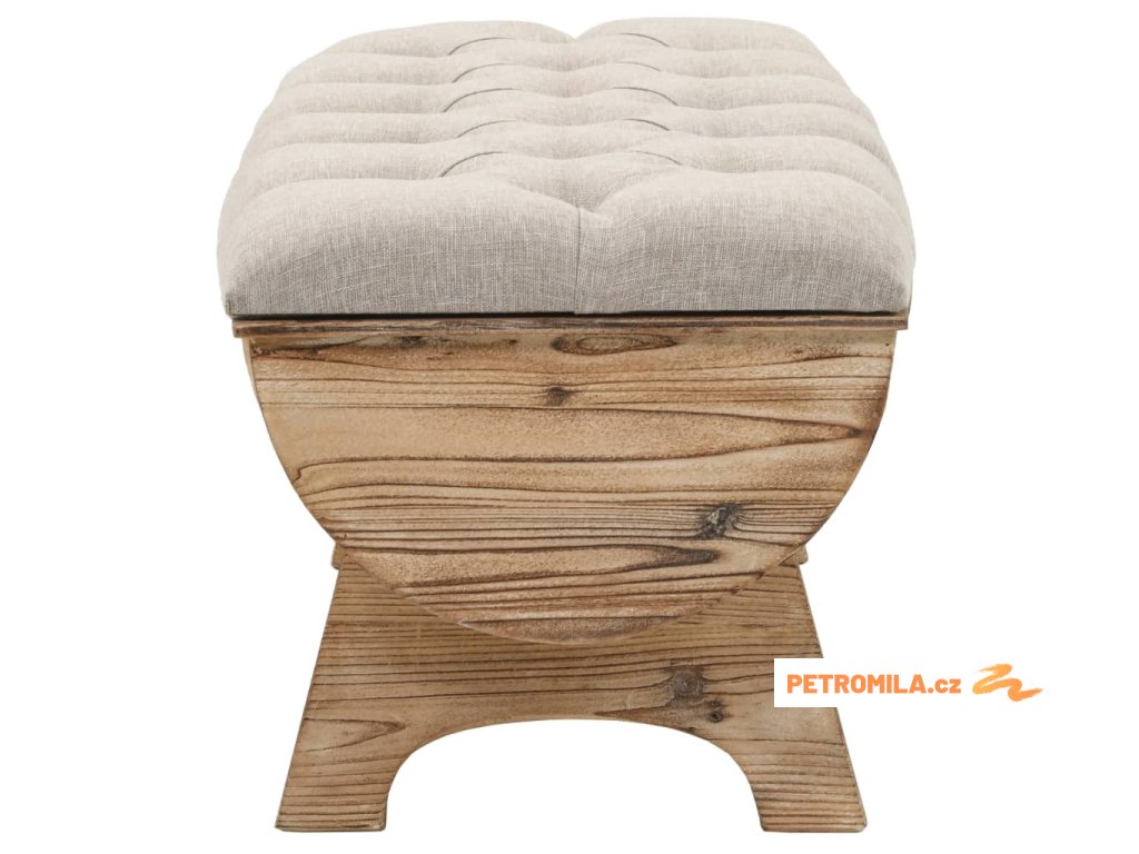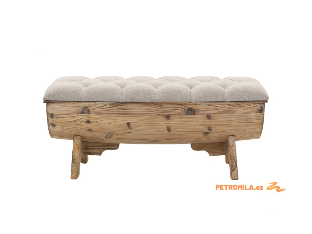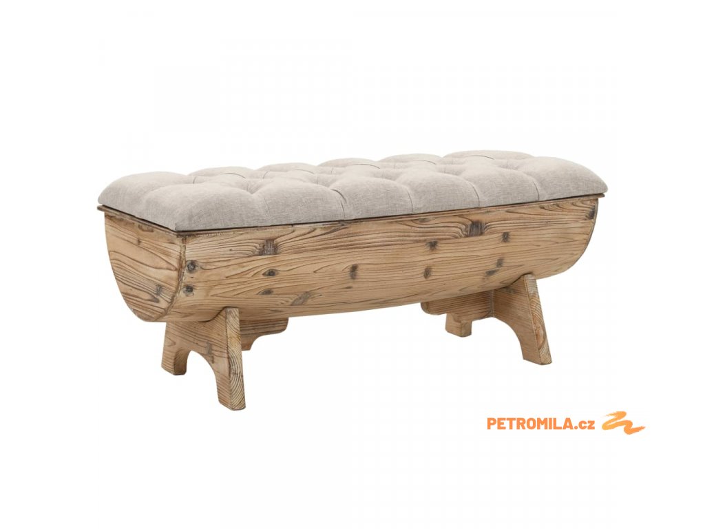 Pohodlná lavice je vyrobena z masivního jedlového dřeva a její polstrovaný sedák má látkové čalounění. Poskytne vám spoustu prostoru k ukládání hromady nejrůznějších věcí, které chcete mít po ruce, ale současně uklizené z dohledu. Odolná dřevěná základna lavice přispívá k jejímu rustikálnímu šarmu.