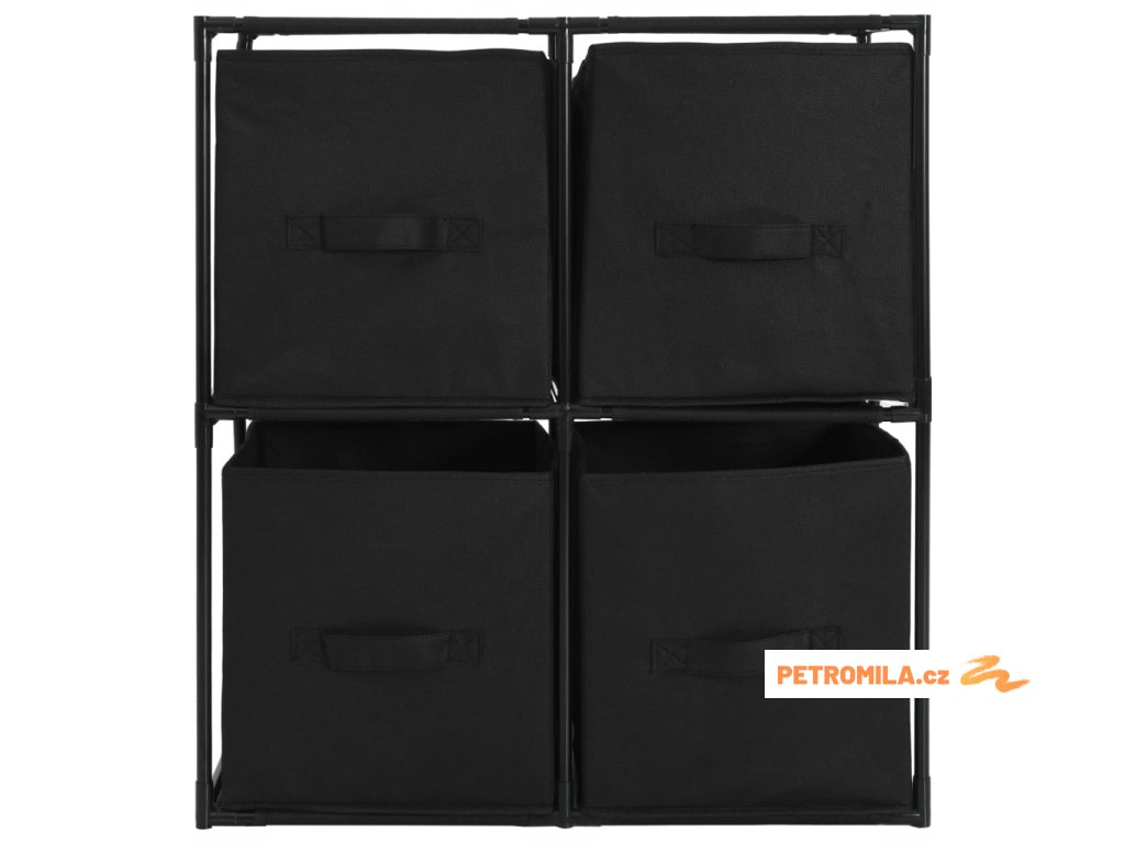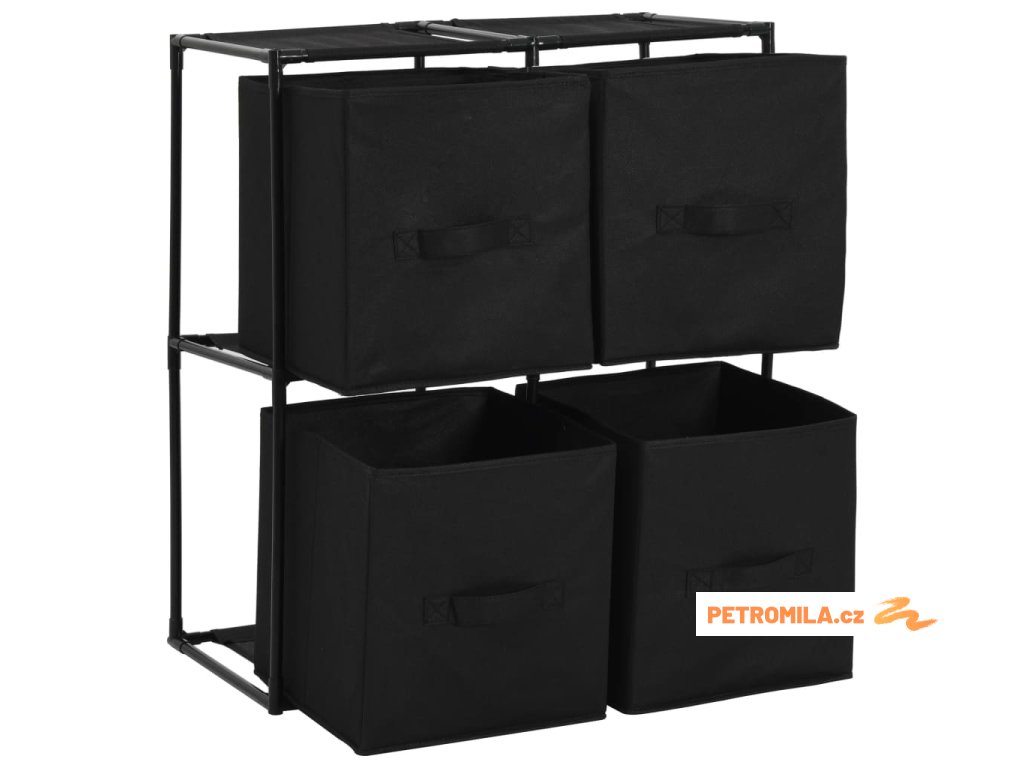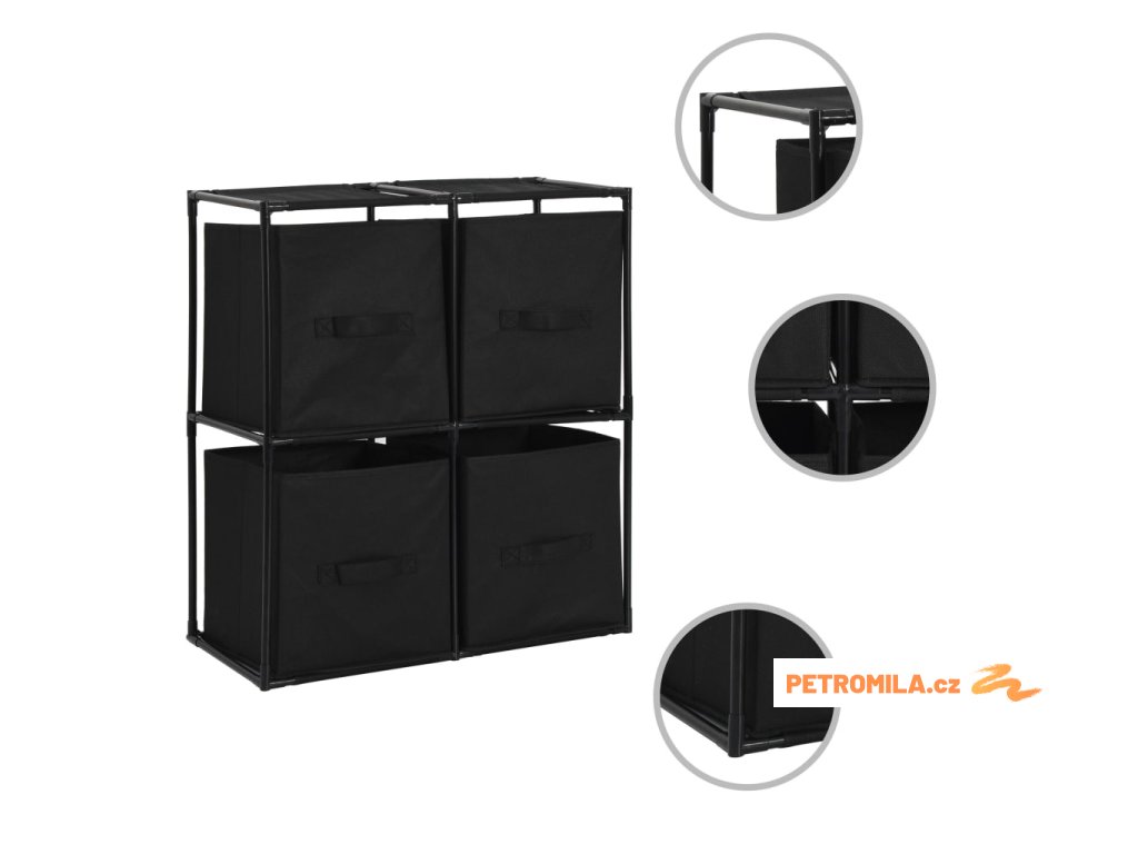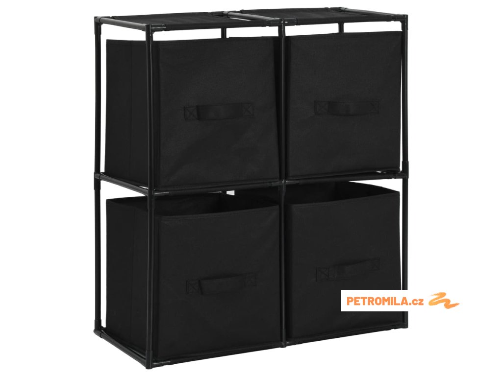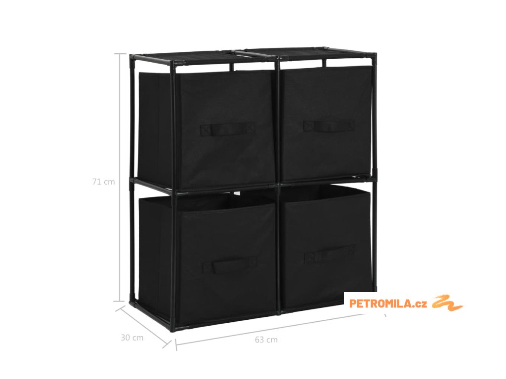 Úložná skříňka se 4 textilními koši černá 63 x 30 x 71 cm ocel