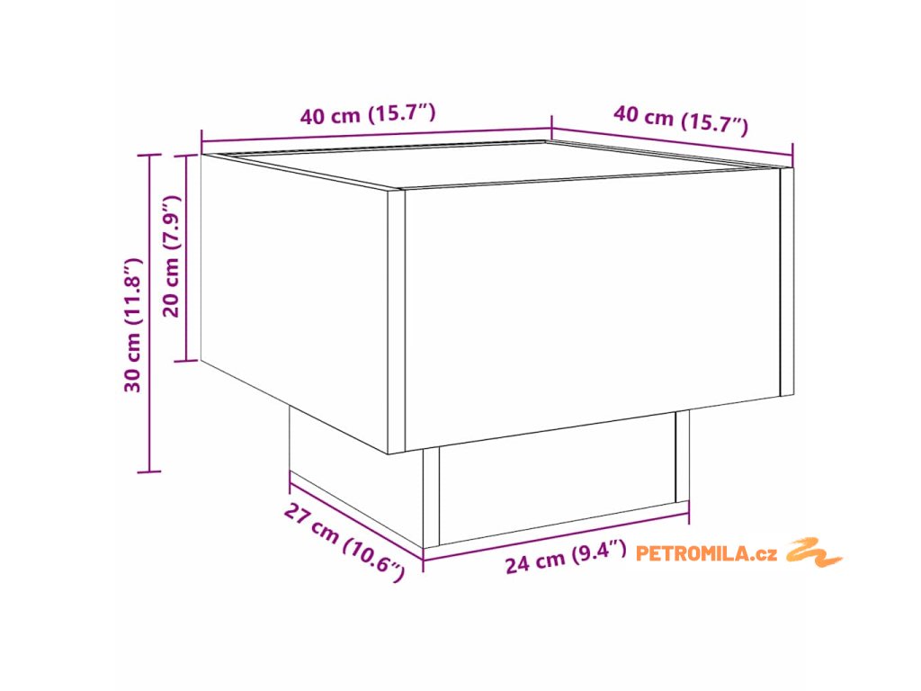 - Celkové rozměry: 40 x 40 x 30 cm (D x Š x V)