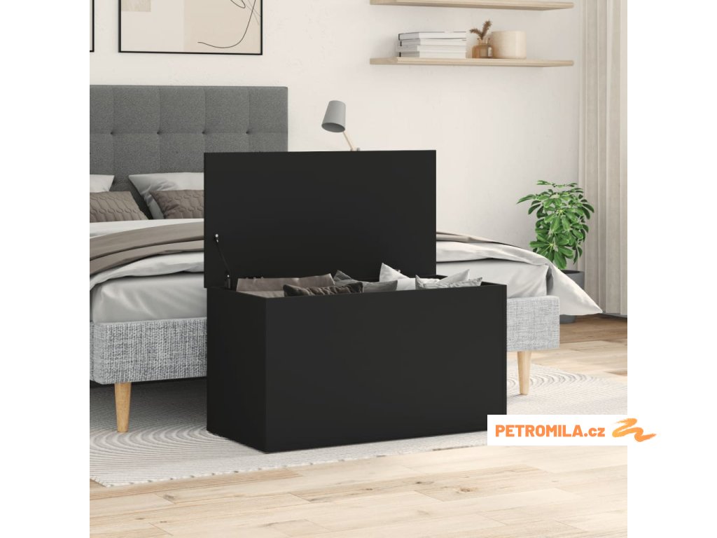Úložná truhla černá 84 x 42 x 46 cm kompozitní dřevo
