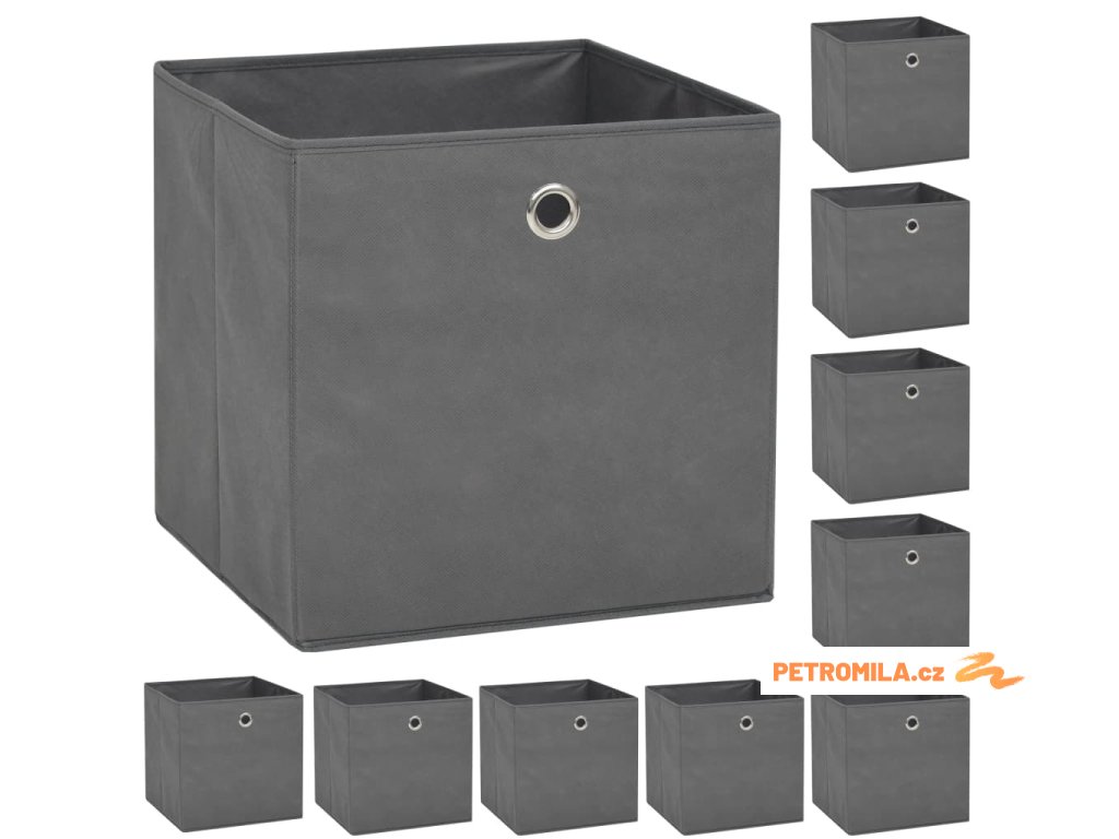 Úložné boxy 10 ks netkaná textilie 32 x 32 x 32 cm šedé