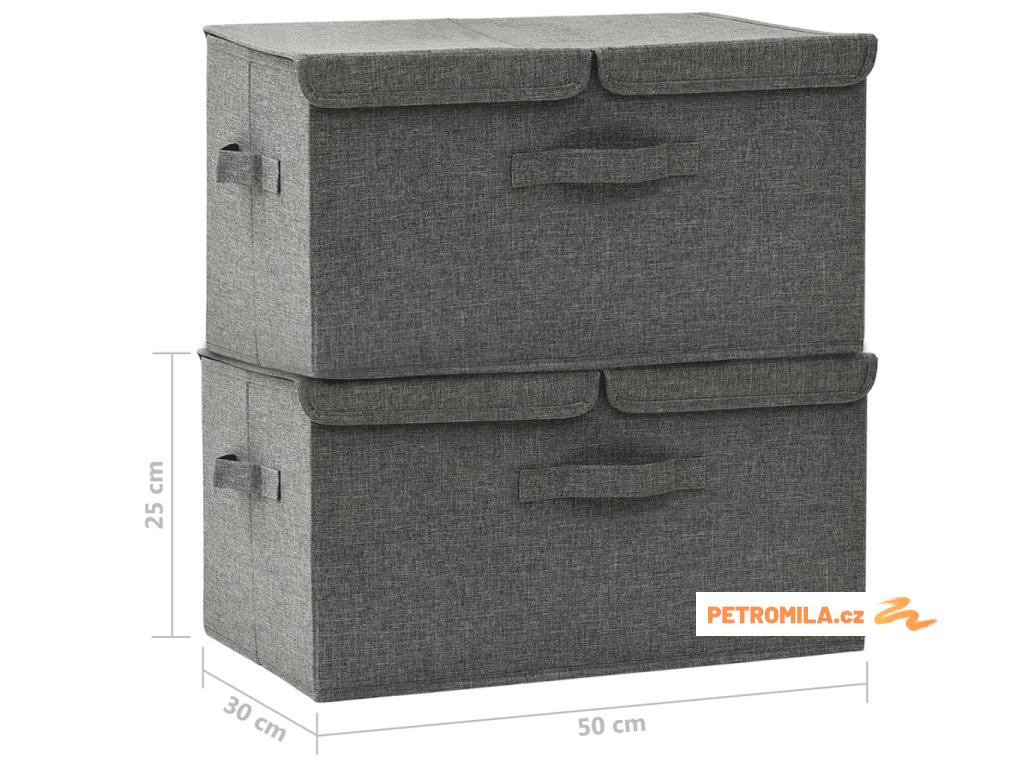 Úložné boxy 2 ks textil 50 x 30 x 25 cm antracitové
