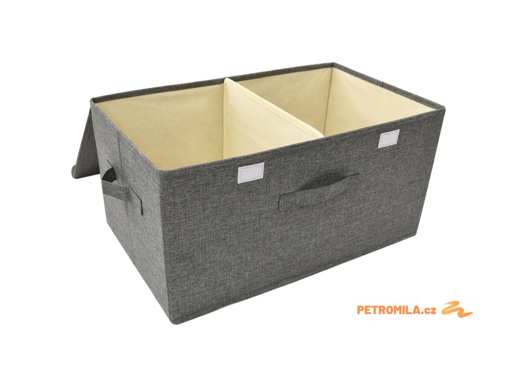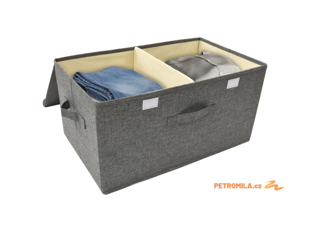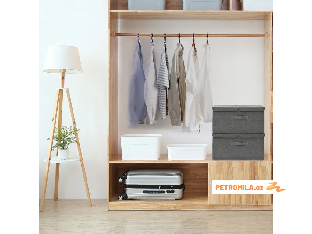 Jsou zhotoveny z různých druhů tkanin s dlouhou životností. Úložné boxy mají 2 přihrádky a poskytnou dostatek prostoru pro uschování hraček, šál, ponožek, knih atd. Když boxy nepoužíváte, můžete je složit a ušetříte tím místo. Každý z nich má navíc rukojeť, abyste jej mohli snadno vyjmout ze skříně.