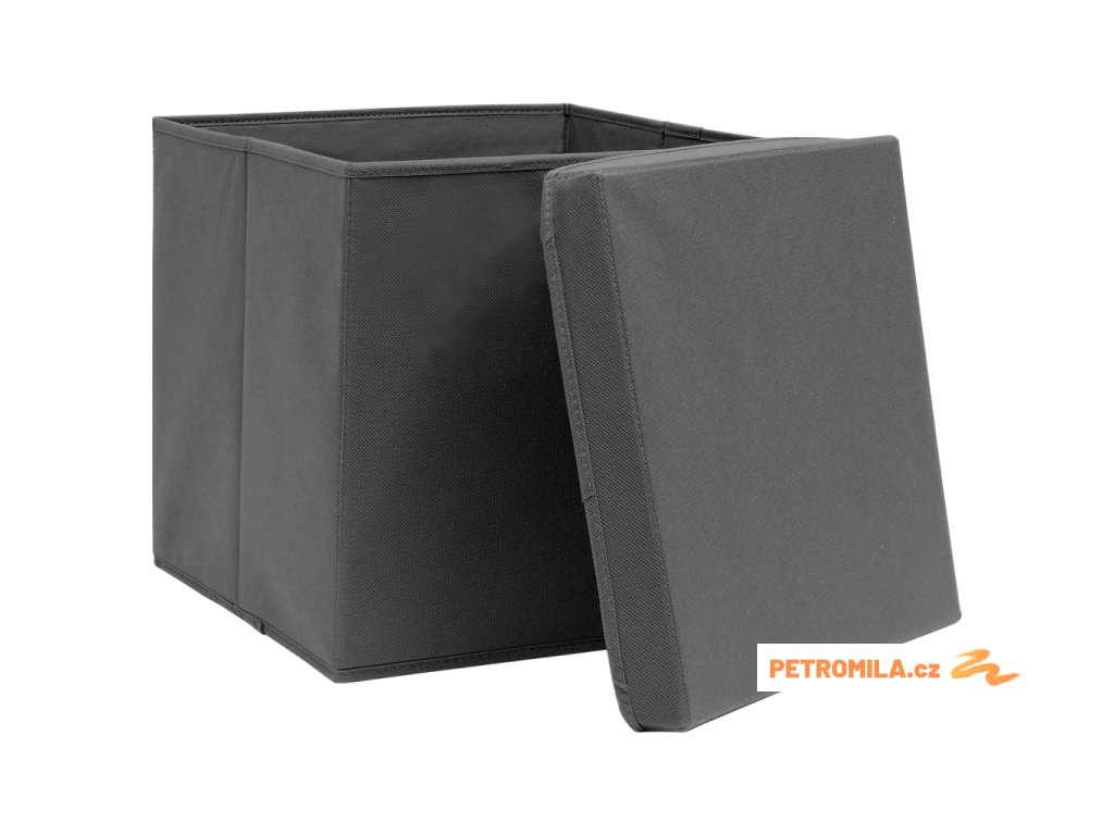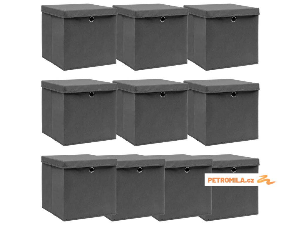 Úložné boxy s víky 10 ks šedé 32 x 32 x 32 cm textil