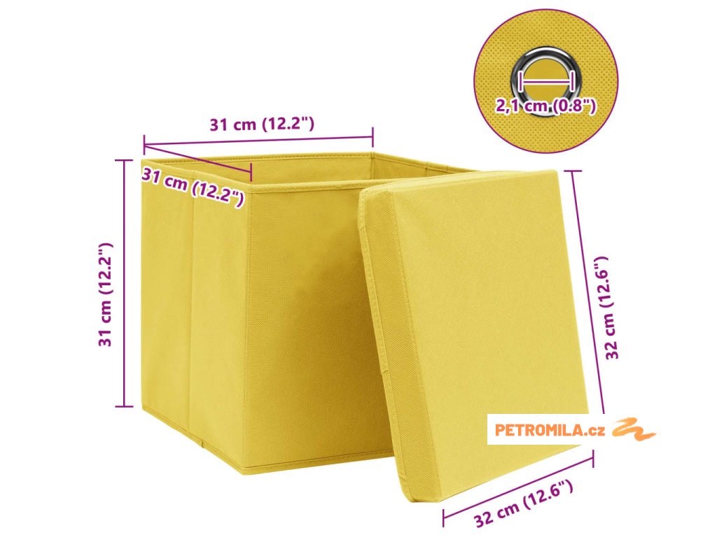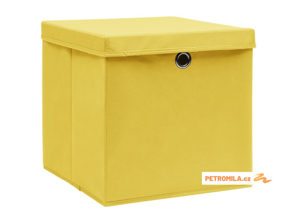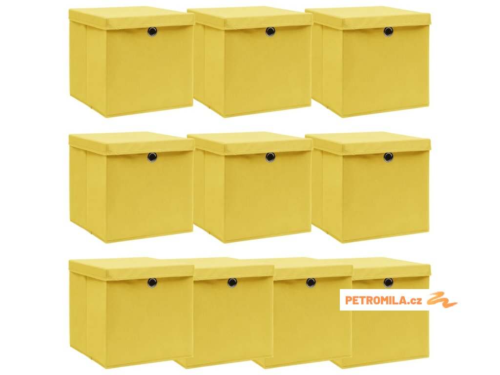Úložné boxy s víky 10 ks žluté 32 x 32 x 32 cm textil