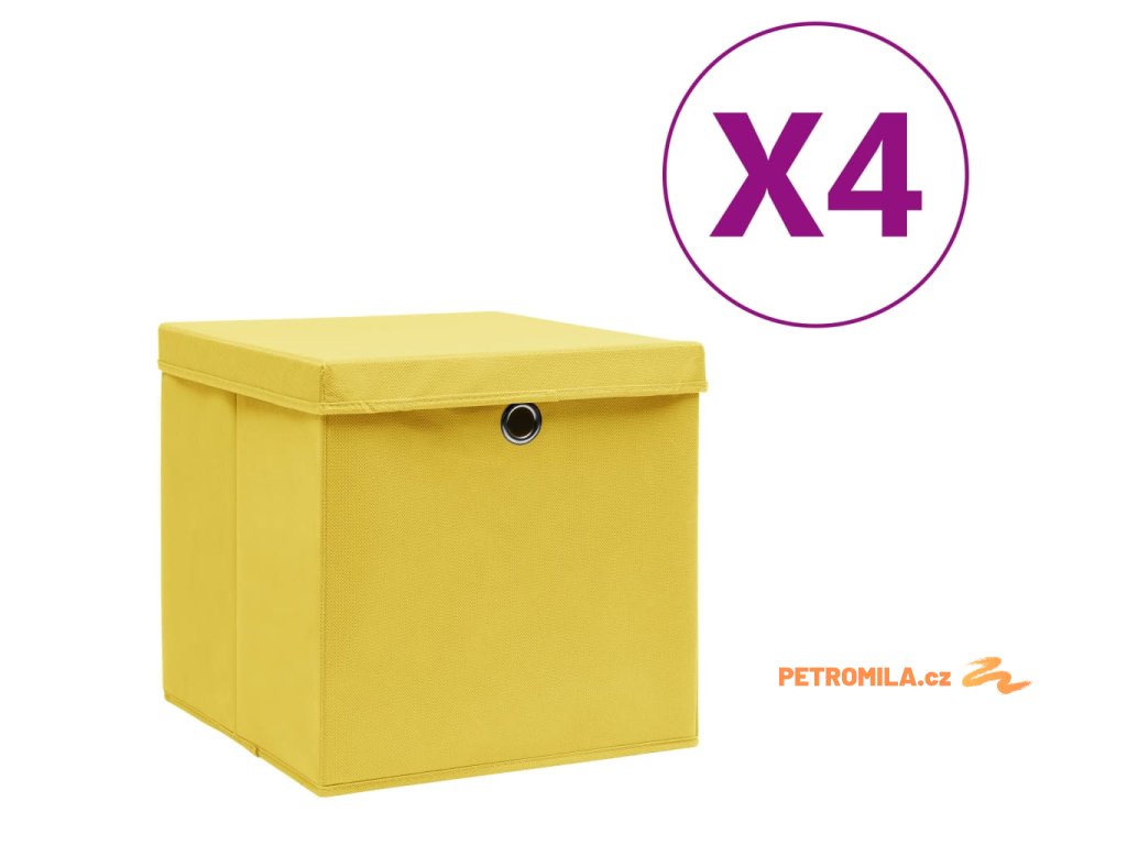 Úložné boxy s víky 4 ks 28 x 28 x 28 cm žluté