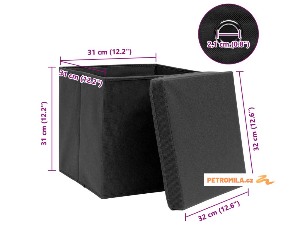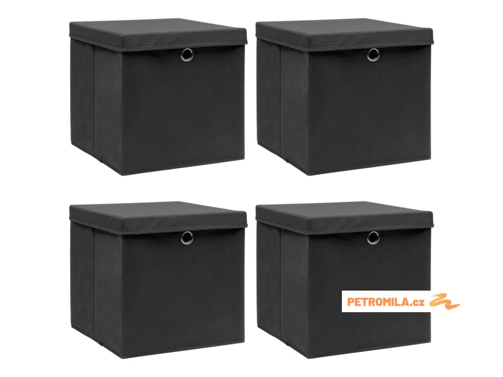 Úložné boxy s víky 4 ks černé 32 x 32 x 32 cm textil