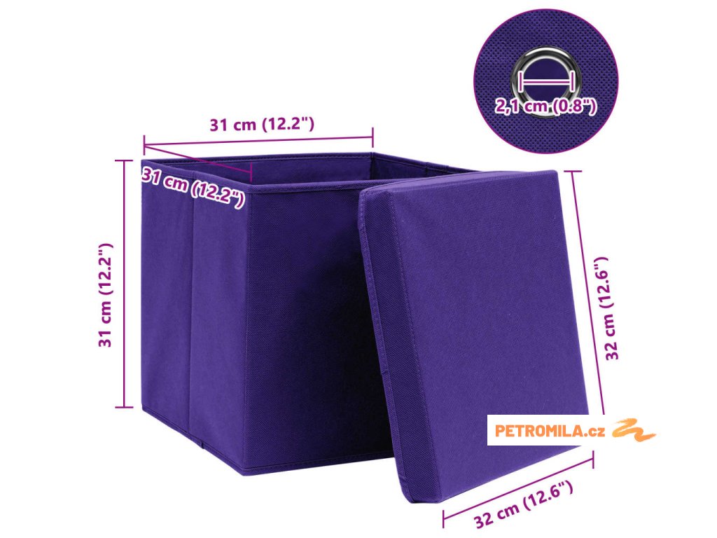 Úložné boxy s víky 4 ks fialové 32 x 32 x 32 cm textil