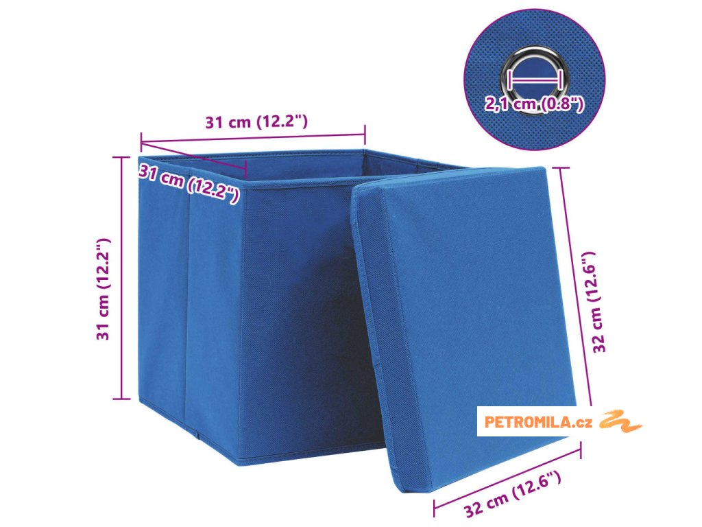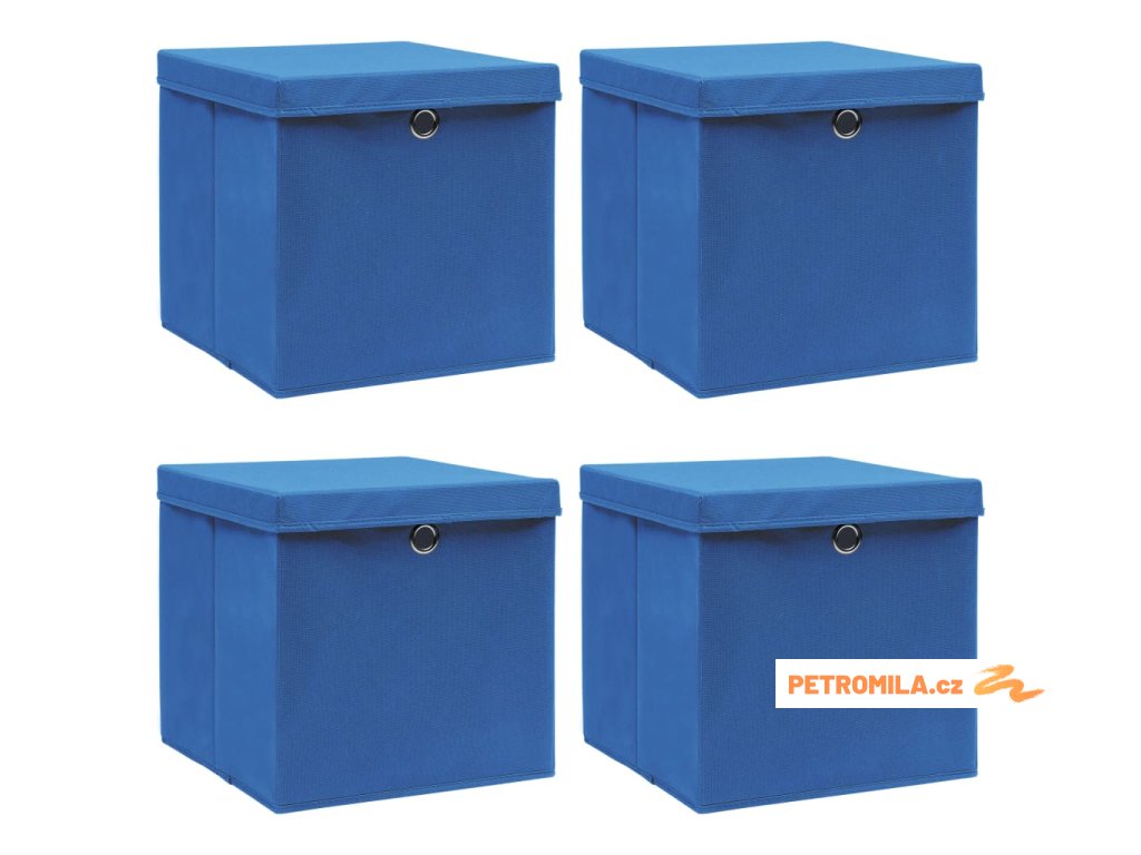 Úložné boxy s víky 4 ks modré 32 x 32 x 32 cm textil