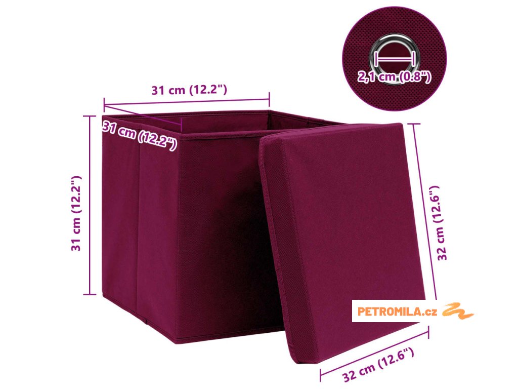 Praktické úložné boxy jsou vyrobené z netkané textilie, takže jsou vskutku velmi odolné. Na každém boxu je víko, které chrání uložené věci před zašpiněním. Každý úložný box je také vybavený praktickým kovovým očkem, za který box snadno vytáhnete z vašeho šatníku, police, skříňky atd. Když je zrovna nepoužíváte, dají se úložné boxy snadno složit, aby vám zbytečně nepřekážely.