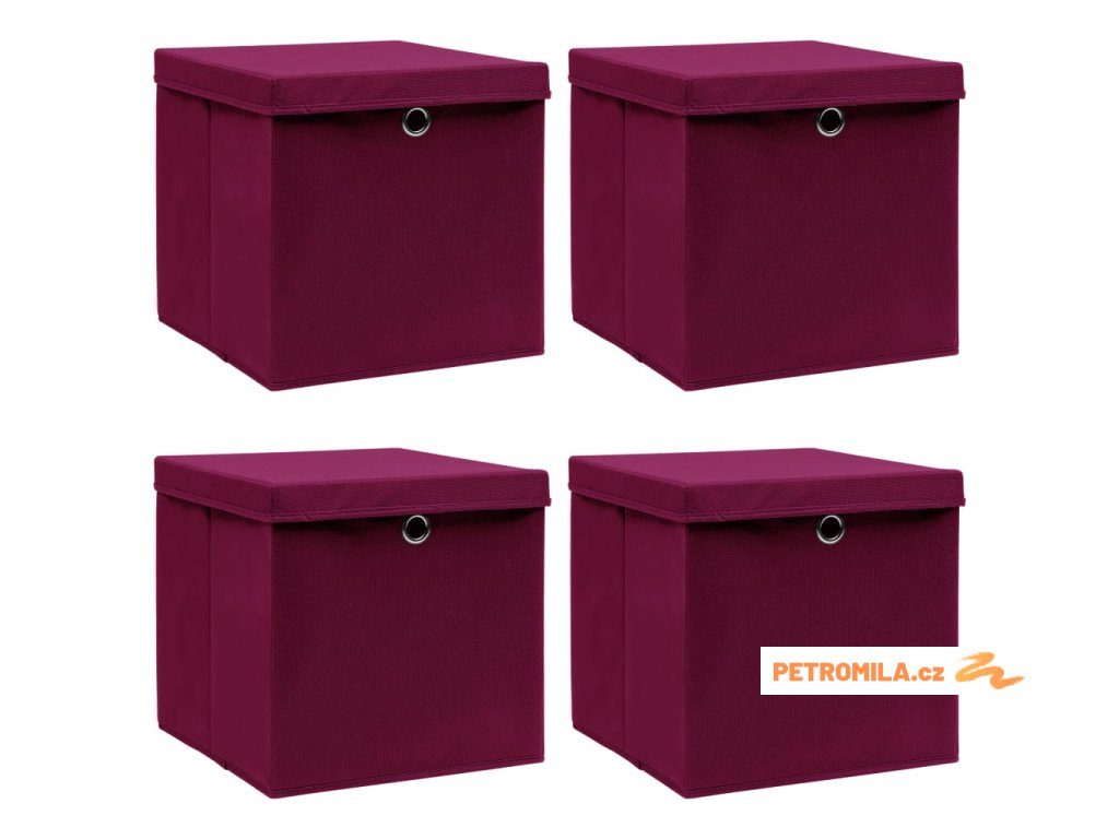 Úložné boxy s víky 4 ks tmavě červené 32 x 32 x 32 cm textil