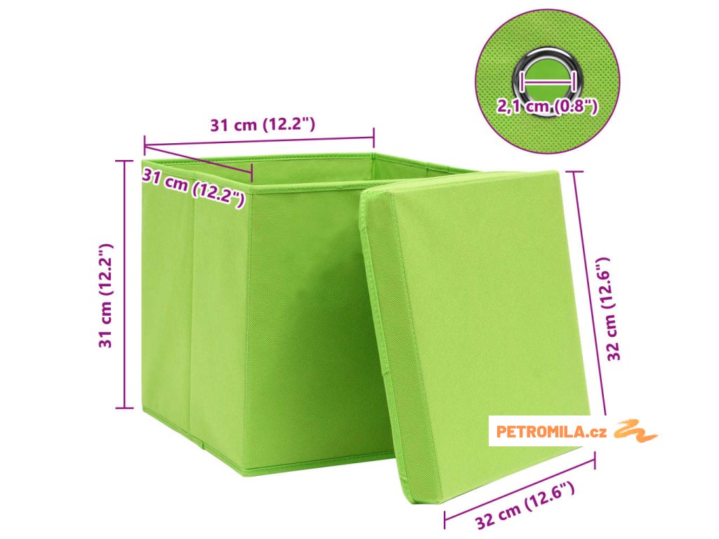 Úložné boxy s víky 4 ks zelené 32 x 32 x 32 cm textil