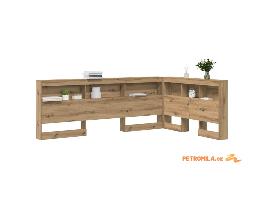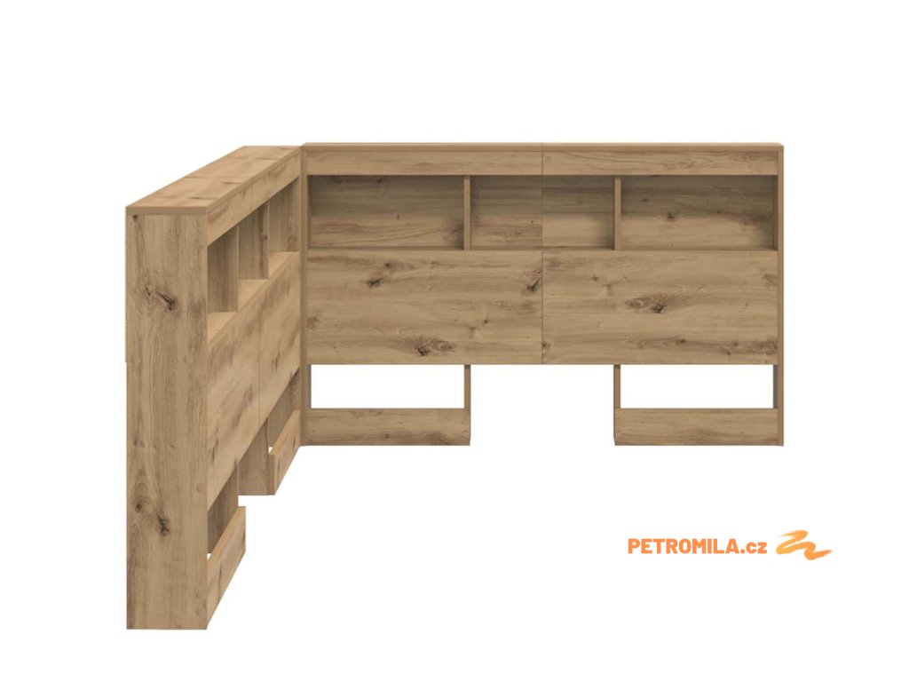 Úložný čelní panel spojuje styl a funkčnost a je ideální pro moderní ložnice. Tvořen z inženýrského dřeva, má minimalistický design a dostatek úložného prostoru pro uspořádání všech nezbytností. Jeho L-tvar dodává unikátní vzhled, skvěle se hodí do současného prostředí ložnice a přináší praktická řešení pro ty, co mají rádi čisté linie a užitečný design.