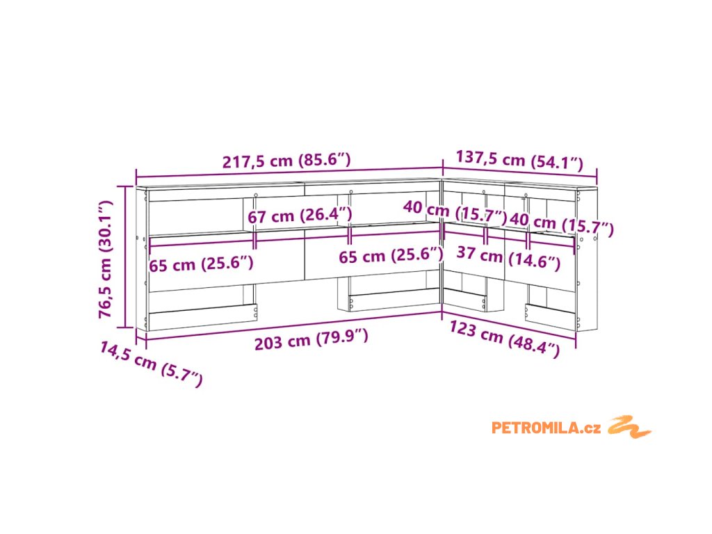 - Celkové rozměry: 217,5 x 137,5 x 76,5 cm (D x Š x V)