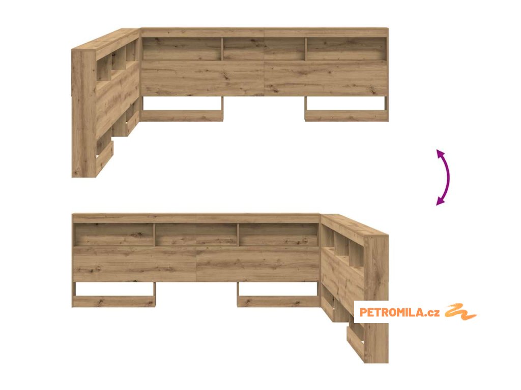 Úložný čelní panel spojuje styl a funkčnost a je ideální pro moderní ložnice. Tvořen z inženýrského dřeva, má minimalistický design a dostatek úložného prostoru pro uspořádání všech nezbytností. Jeho L-tvar dodává unikátní vzhled, skvěle se hodí do současného prostředí ložnice a přináší praktická řešení pro ty, co mají rádi čisté linie a užitečný design.