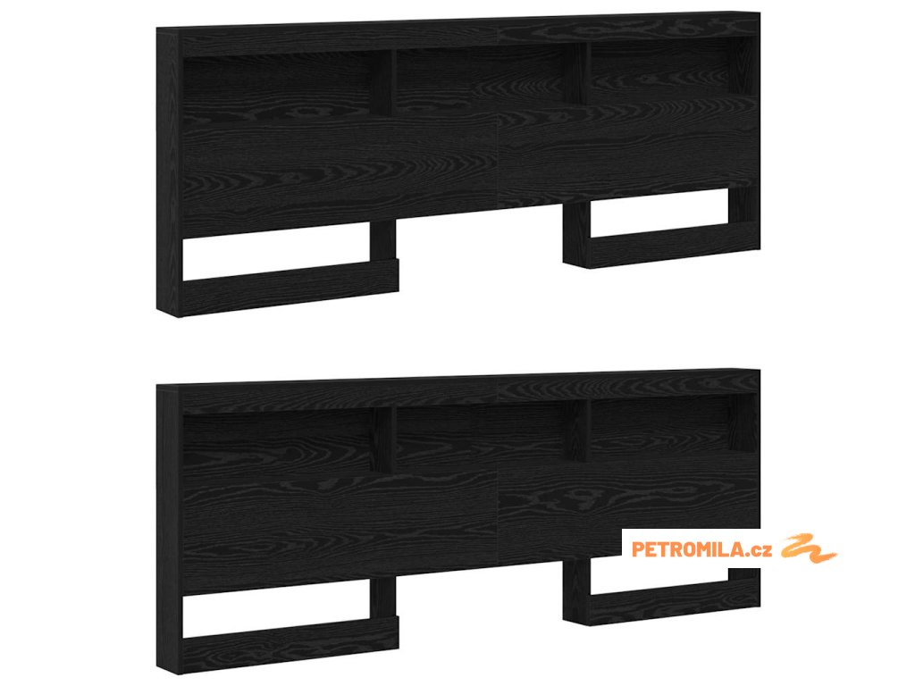 Úložné čelo postele s policí Černý dub 200 cm Kompozitní dřevo