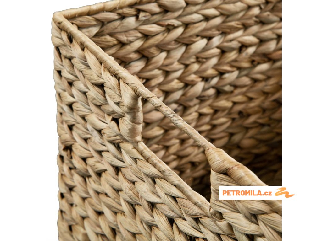 Koše jsou zhotovené z vodního hyacintu s pevným kovovým rámem, jsou tudíž pevné a odolné. Lze do nich uložit mnoho hraček, knih, magazínů nebo jiných předmětů, které se mají často tendenci hromadit v domácnosti. Atraktivní pletený vzhled dodává košíkům rustikální šarm.