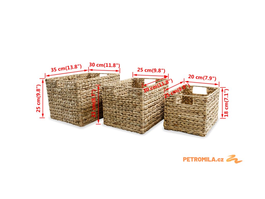 Úložné koše, sada 3 ks, vodní hyacint