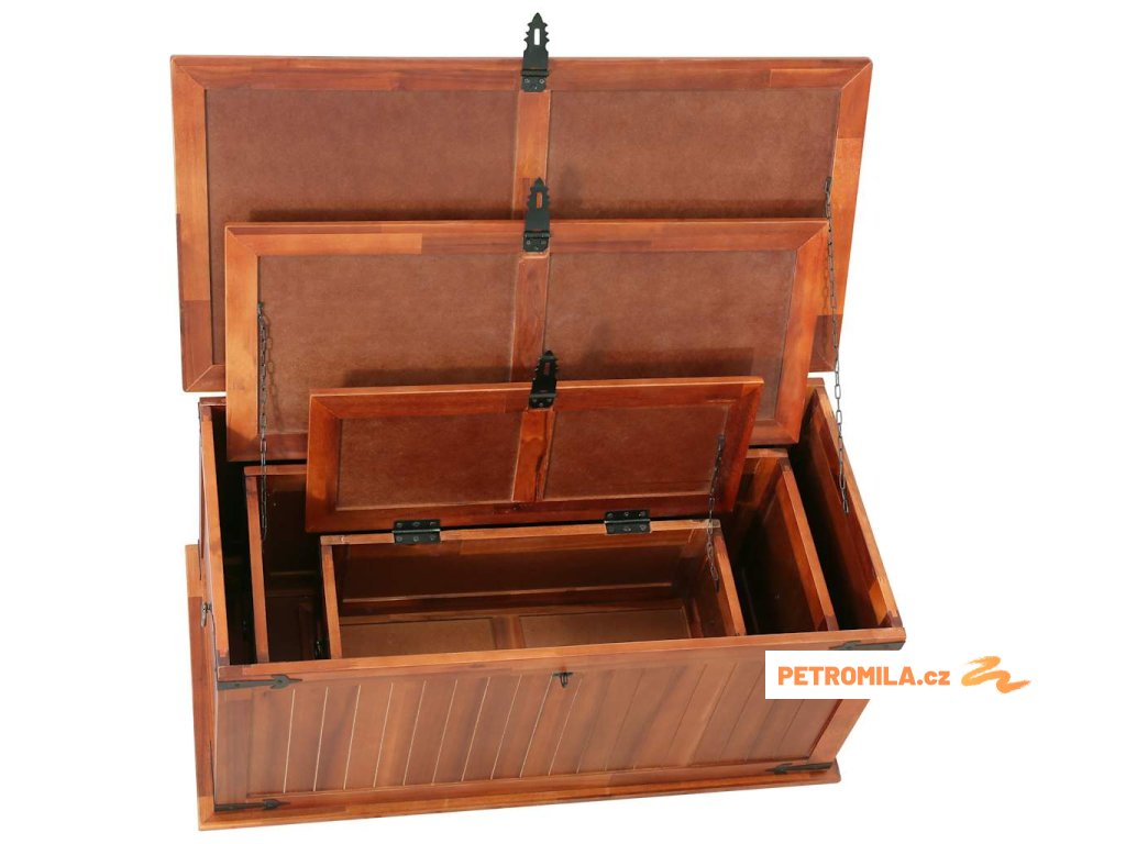 - Rozměry (střední truhla): 79 x 34 x 32 cm (Š x H x V)