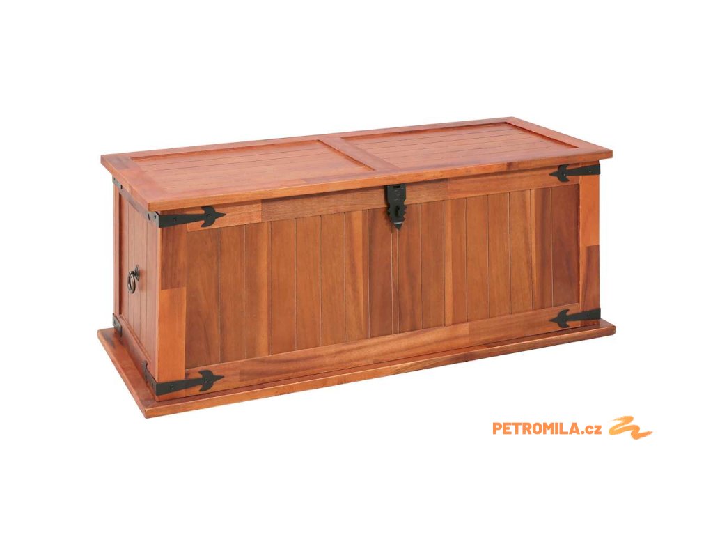 Úložný box vám poskytne spoustu místa, kam si můžete uložit své oblečení, časopisy, knížky, nářadí a další věci. Na přední straně má západku, zatímco boční strany jsou opatřeny úchytkami. Horní víko dřevěné truhly tvoří pevná deska, můžete ji tedy rovněž využít jako konferenční stolek, stolek k pohovce, stolek do obývacího pokoje, odkládací stolek, přístavný stolek apod. Box je ručně vyroben z masivního akáciového dřeva. Zručné zpracování a překrásná kresba dřeva navíc činí každý kus nábytku zcela jedinečným a lehce odlišným od ostatních.