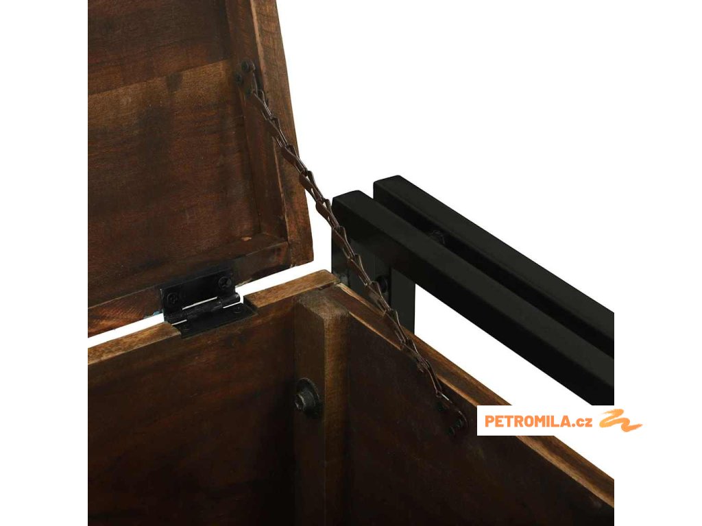- Vlastnosti / Funkce / Design: Krabice má rustikální styl, který skvěle funguje v tradičních interiérech, mísí funkčnost s estetikou a nabízí spoustu úložného místa. Může se použít jako konferenční stolek nebo jako extra místo k sezení, což vám dává skvělou flexibilitu v různých místnostech.