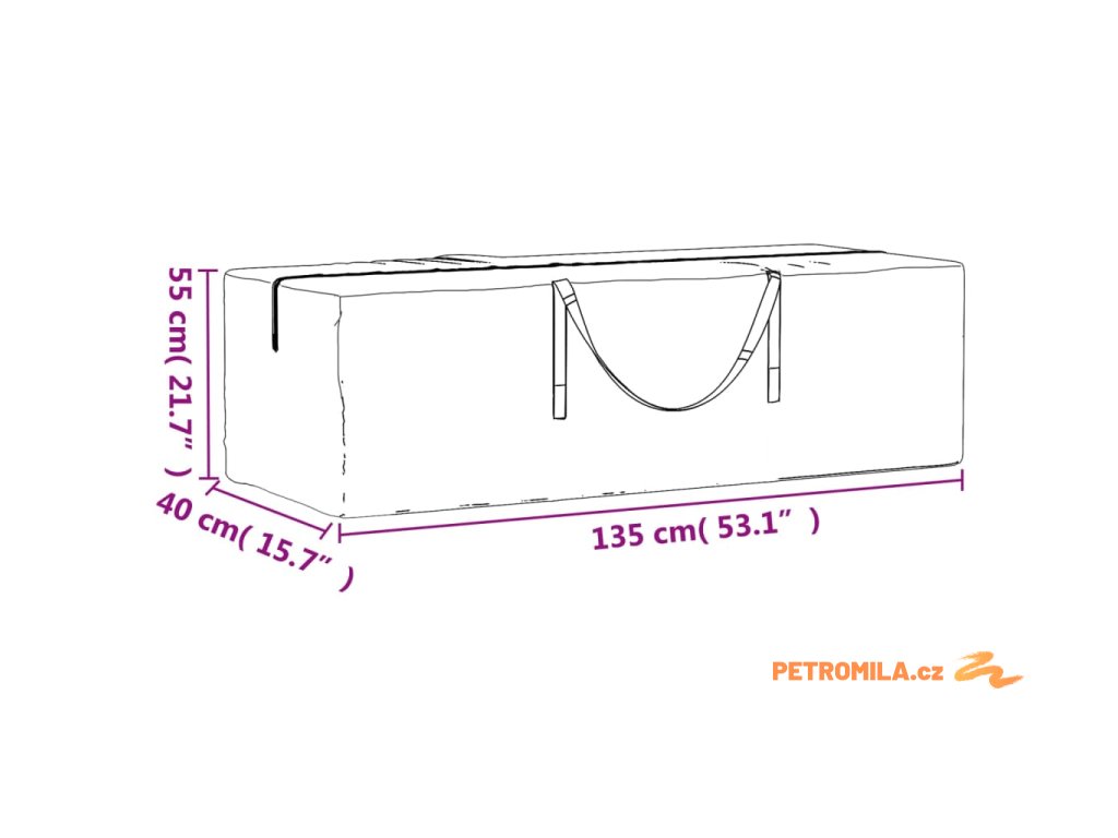 - Praktické úchyty a zip: Taška na zahradní podušky má dlouhý zip, který usnadňuje nakládání a vykládání. Pomocí 2 pevných úchytů se vak na podušky snadno přenáší a přepravuje.
